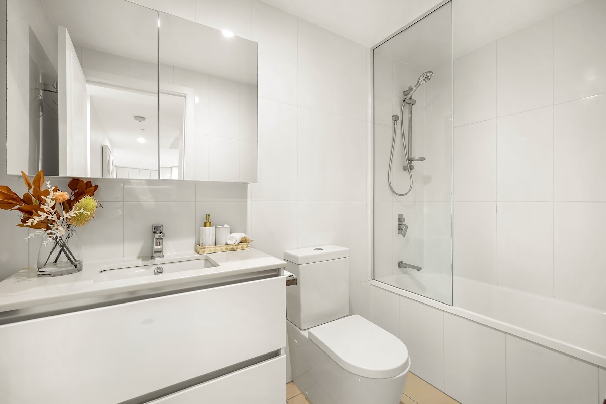 Inside, the light-filled open plan design creates an inviting sense of space, with seamless indoor-outdoor flow to a private balcony—ideal for morning coffee or evening entertaining. The contemporary kitchen is thoughtfully appointed with stone benchtops, quality appliances, and excellent storage.