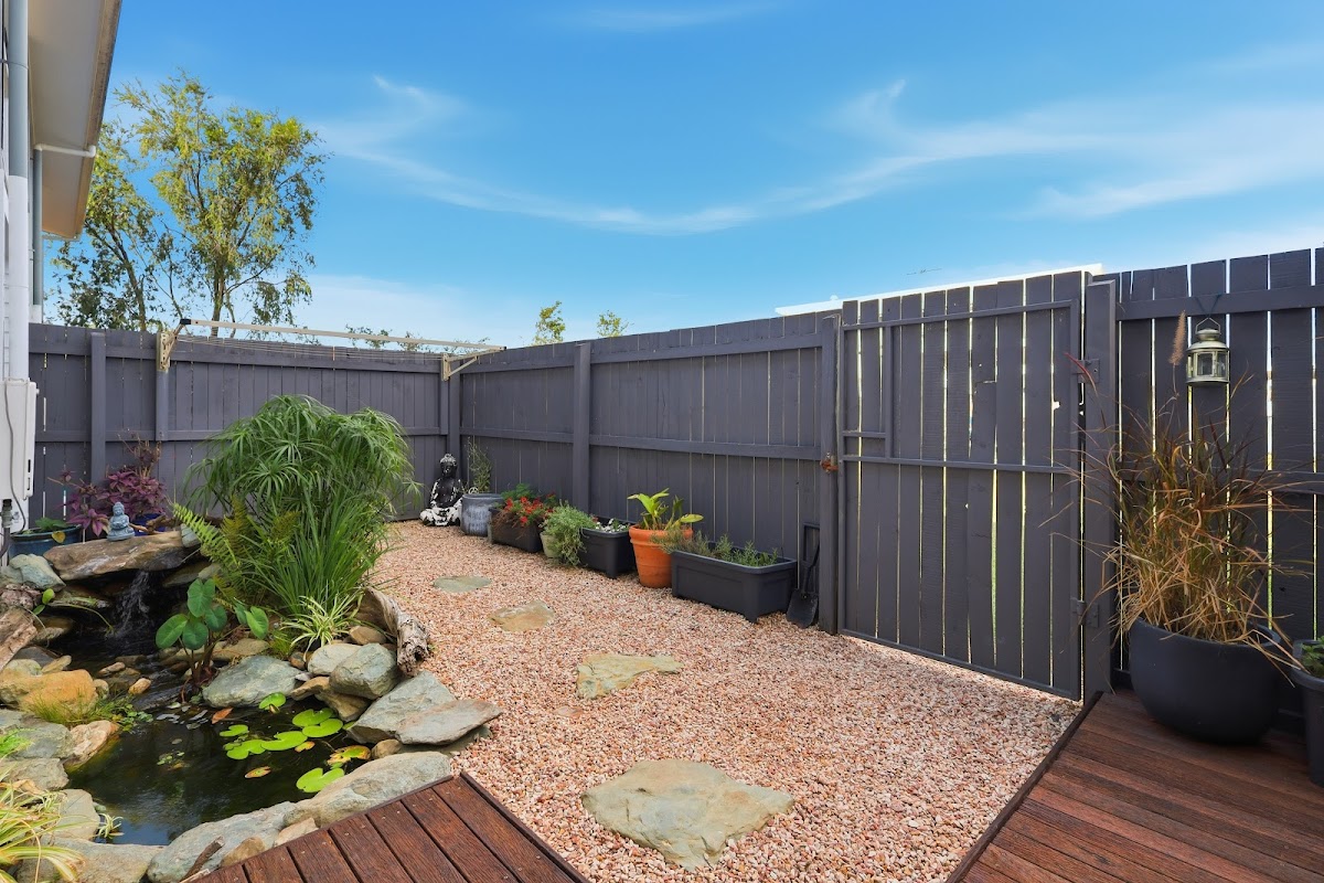 Outside, a tranquil Zen-inspired courtyard provides a peaceful escape, fully fenced for privacy and security.