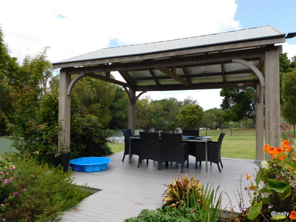 Open plan design with new kitchen, plumbed in fridge, dishwasher, electric cooking, plenty of cupboard and bench space. This area has an adjoining dining area, very large living area and access to two outside covered alfresco area and beautiful pergola overlooking the gardens and acreage.