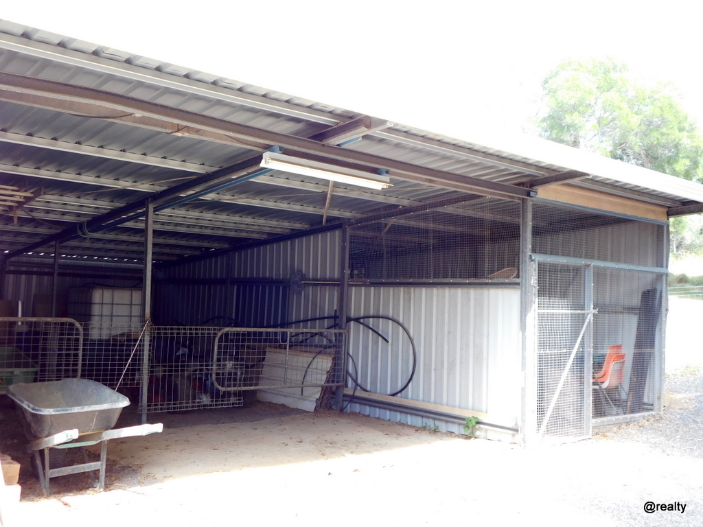 *Multiple sheds – the large shed is 15m x 7.5m and has the fully self-contained unit at the far end. There is a work shop and double car space at the front. On the side of this shed is a fully enclosed drive through caravan/truck area. Behind this main shed is a 9m x 9m shed with open front and enclosed chook pen.