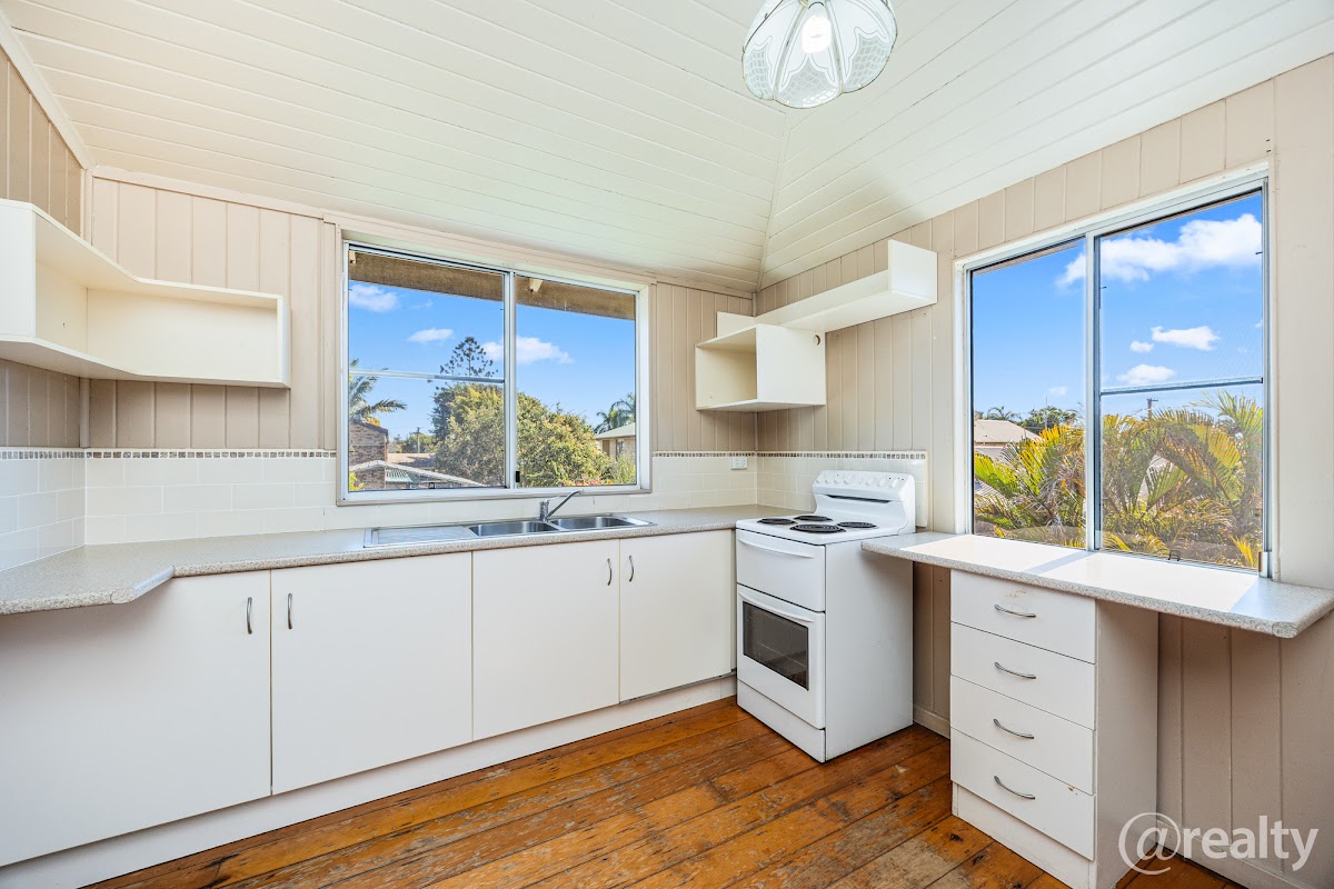 Upstairs there’s some work to do to bring it up to it’s full potential, but it hasn’t been changed to much over the years either. It’s very liveable as is with a well proportioned kitchen, good sized bathroom and 3 bedrooms, all airconditioned, with the main in particular a great size.
