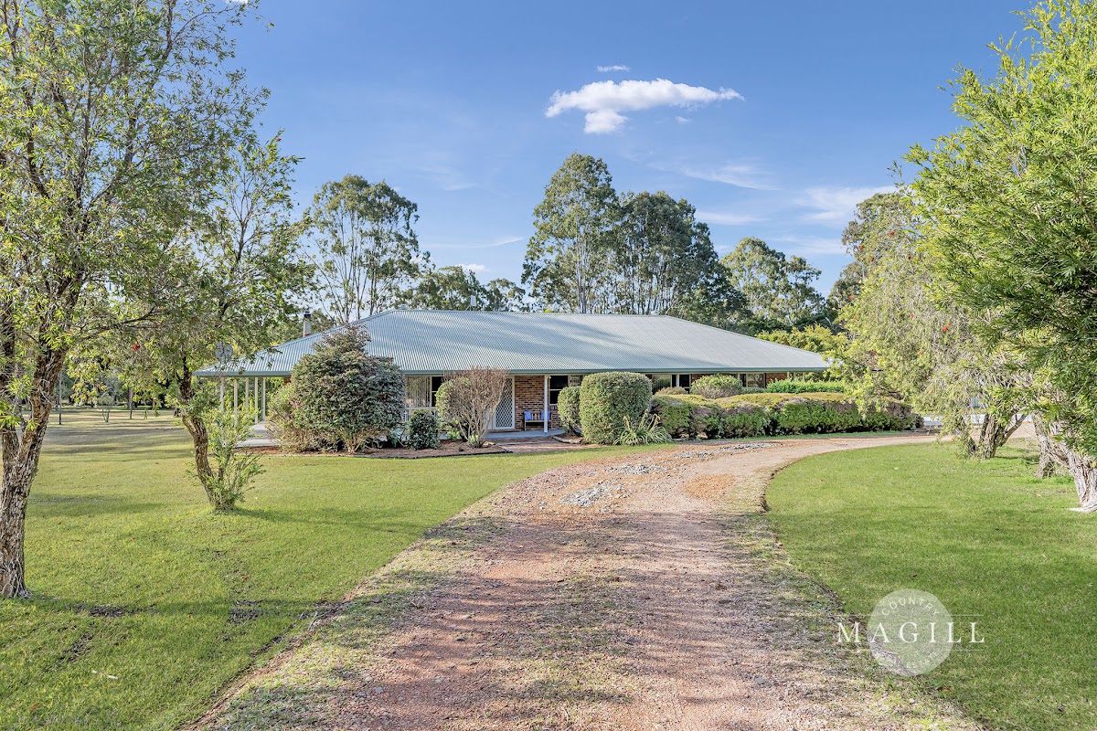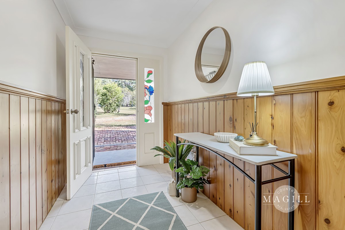 Ceiling fans are installed throughout the home for added comfort, and a solar system is also in place. The master bedroom is generously sized, featuring a walk-in wardrobe and a spacious ensuite. Wrap-around verandahs provide the perfect spot to unwind and take in the landscaped gardens, which are adorned with native plants that attract a variety of birds. Kangaroos are often seen basking in the sun, adding to the feel of a personal wildlife park.
