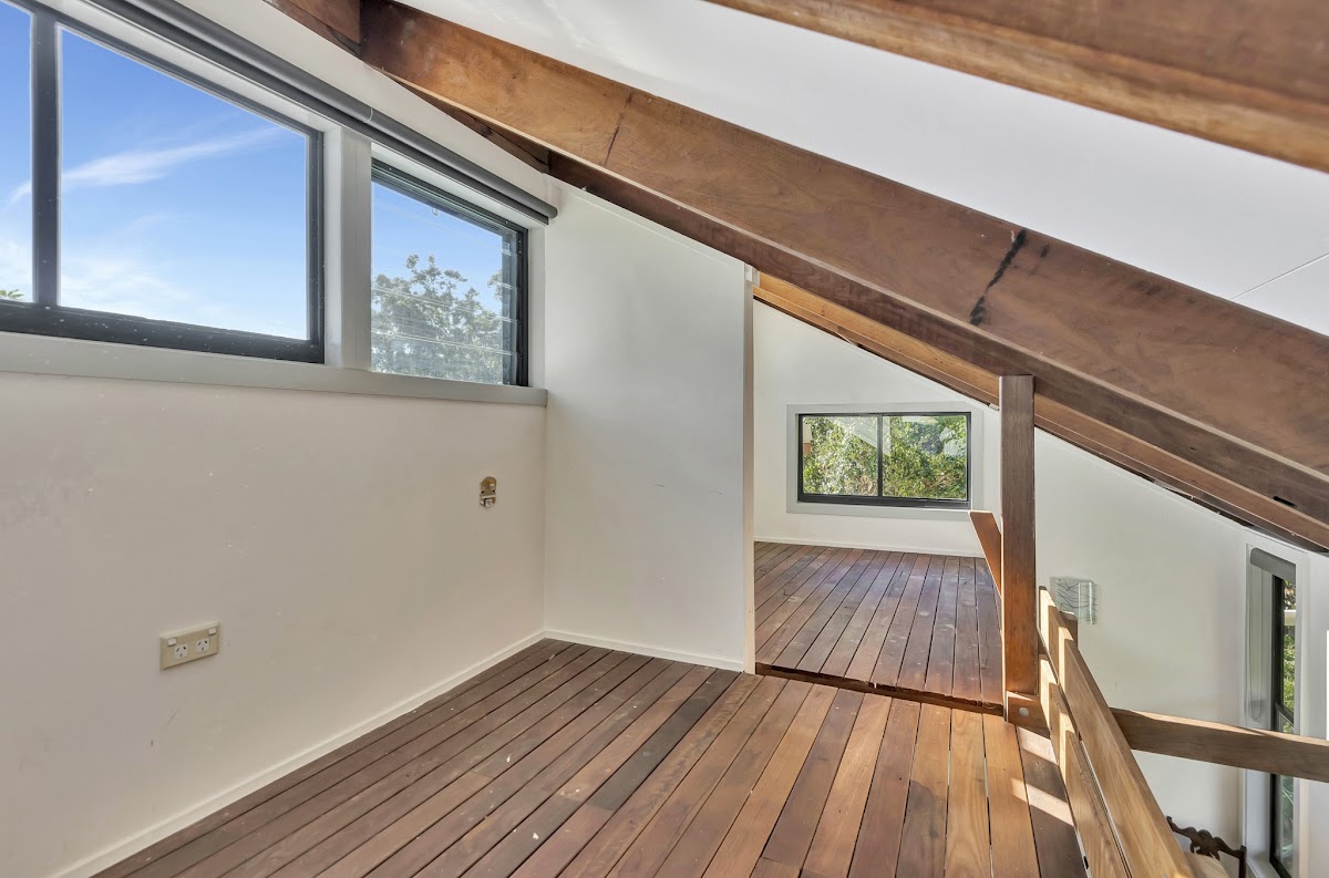 – The second bedroom features a double loft for extra sleeping or storage space.