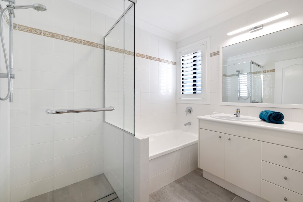 Exquisite Ensuite with Frosted Glass Privacy Door
