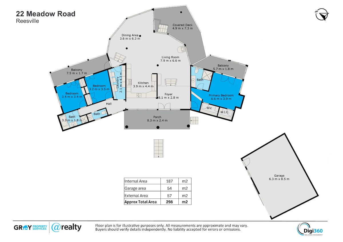 • Master bedroom with his and her wardrobes, high raked ceilings with private deck and ensuite
