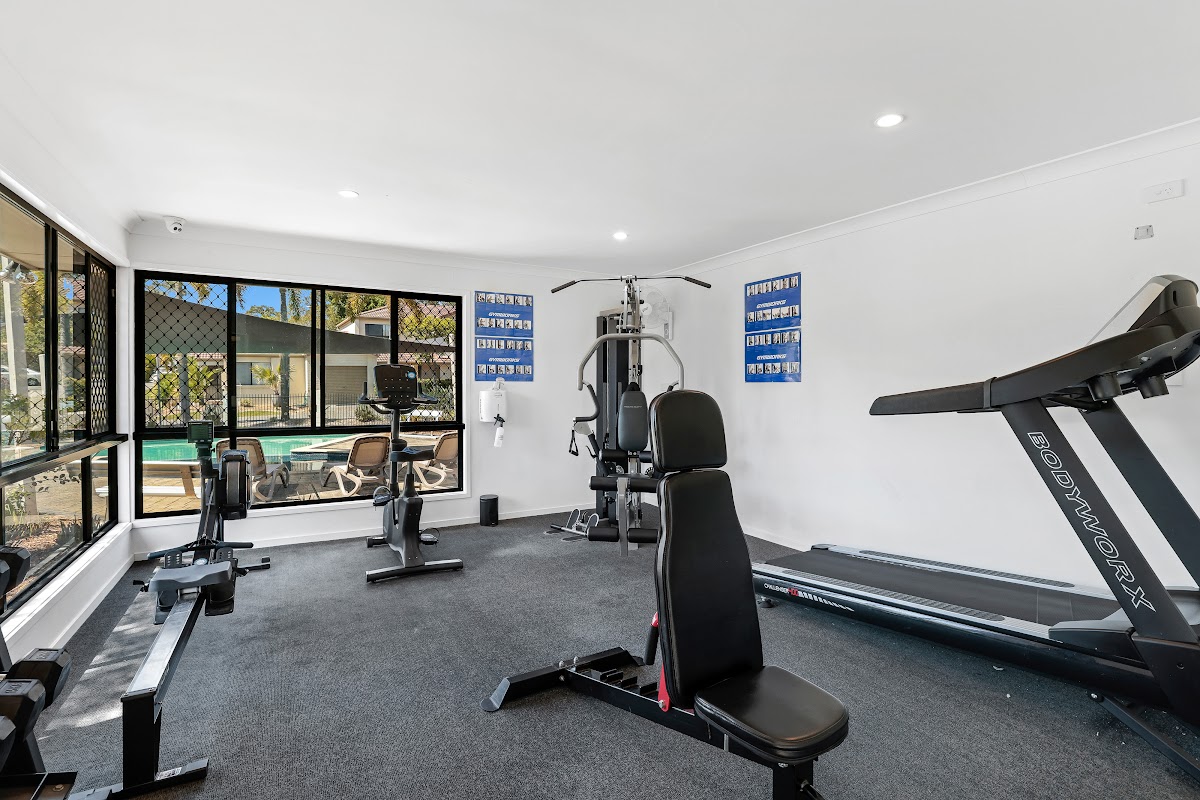 Set back from the road, affords you peace and quiet. A short stroll to the Pool and Gym, proximity couldn’t be more perfect. Close enough for convenience, but far enough away to not hear the noise that can come with the fun at these facilities.