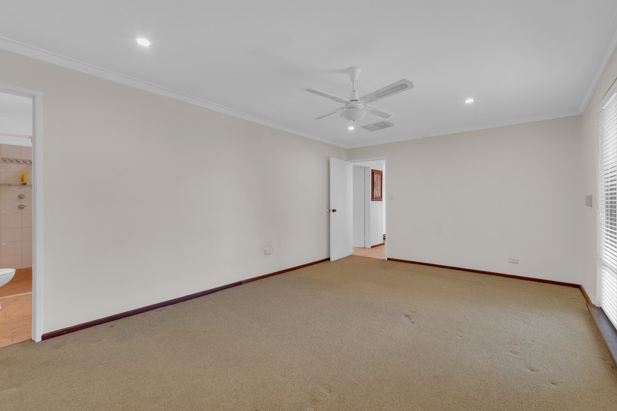 The property features 3 great sized bedrooms, all carpeted and complete with built in robes, fitted blinds and modern lighting. The master bedroom being the star of the show, it is a great size and will easily fit all of your furniture, has carpeted floor covering, ceiling fan and a huge en suite with extra large shower, large double sink/vanity and WC. The property also features two good sized living areas, one at the front of the property and one towards the rear, making it perfect for a family looking for a kids retreat separate to the main living areas or private theatre space/games room!