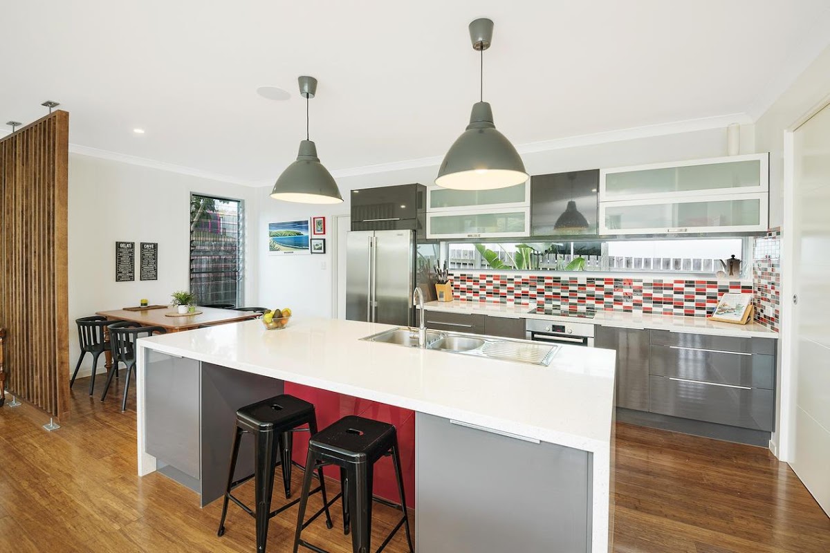 – Kitchen, living and dining flow to the outdoor entertaining area through floor to ceiling doors