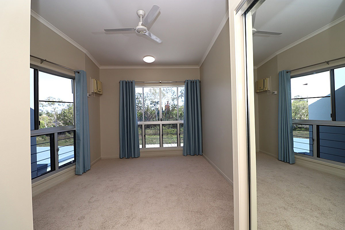 Walk up the polished wood staircase to your second level. The master bedroom is spacious with walk-in robe, ensuite, and storeroom and boasts its own balcony. Bedrooms 2 & 3 are also of a good size and have robes. The high ceilings suite the Townsville climate keeping the Villa cool. For those hotter months fans and air-conditioning have been installed. The bedrooms are carpeted with the living areas tiled. There is also a study nook.