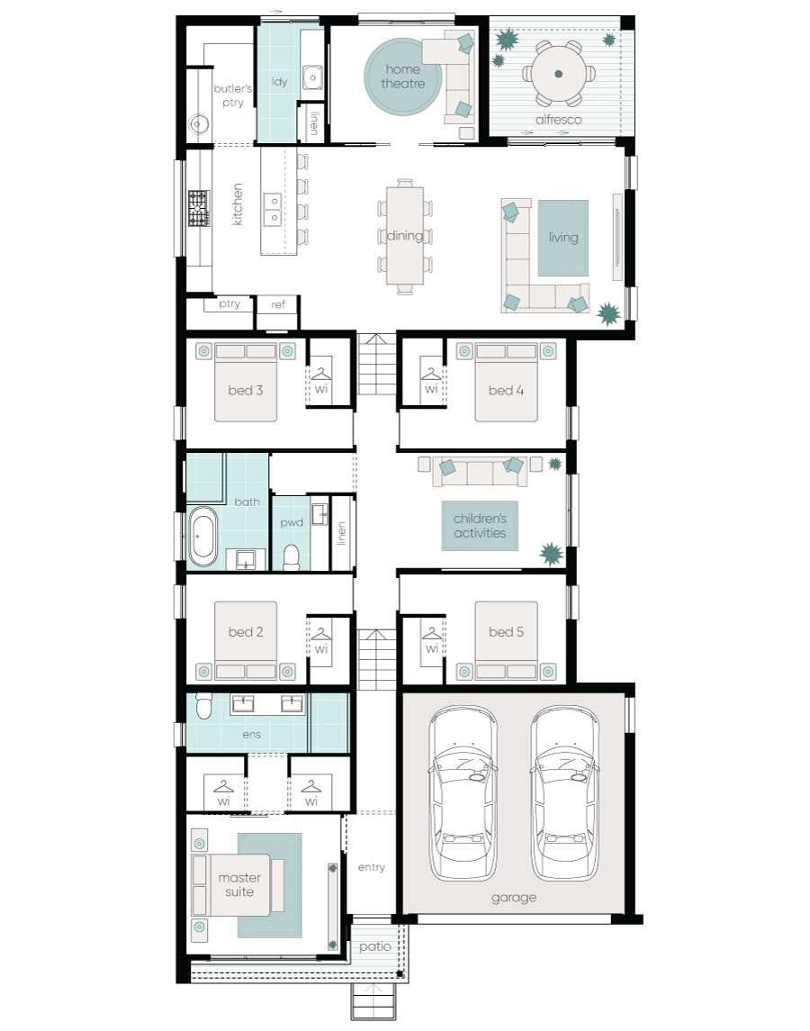 Images are for illustrative purposes and are shown as a guide only. Any material, finishes or renders shown are purely an expression of the artist and may depict fixtures, finishes and features not supplied by Complete by McDonald Jones such as alfresco decking, window and household furnishings and landscaping. Images may also depict optional variations to the house which incur additional charges. Every precaution has been taken to establish the accuracy of the information on this site, but does not constitute any representation by the vendors or agents. Package prices are subject to availability and are accurate at the time of printing. Prices are subject to change without notice.