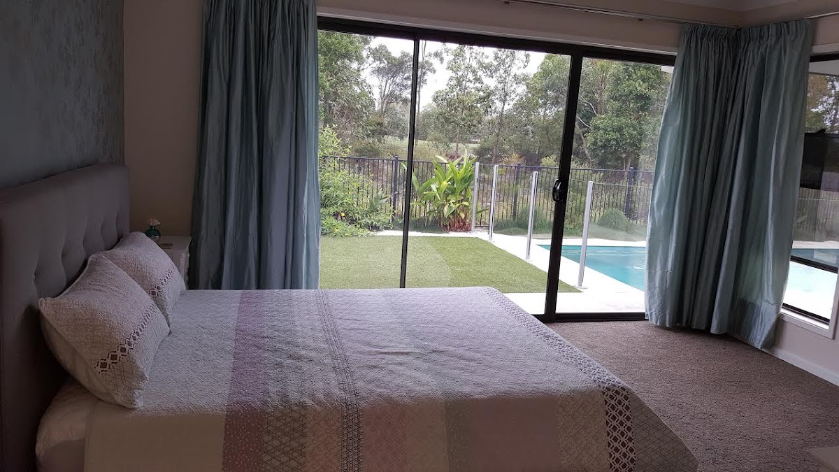 The master bedroom with en-suite bathroom, walk-in robe and built in cupboards is situated at the back of the home with spectacular views of the golf course. The other three bedrooms are located at the front of the home and lead from a separate lounge/children’s playroom. One of the bedrooms has its own French doors to the front timber deck making it ideal for a home office.
