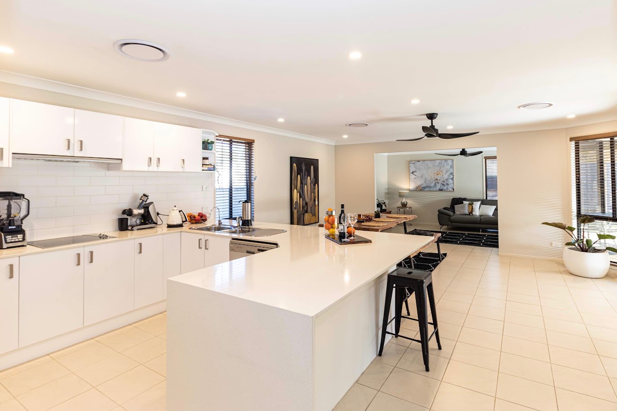 – Oversized modern kitchen with stone benchtops and plenty of storage