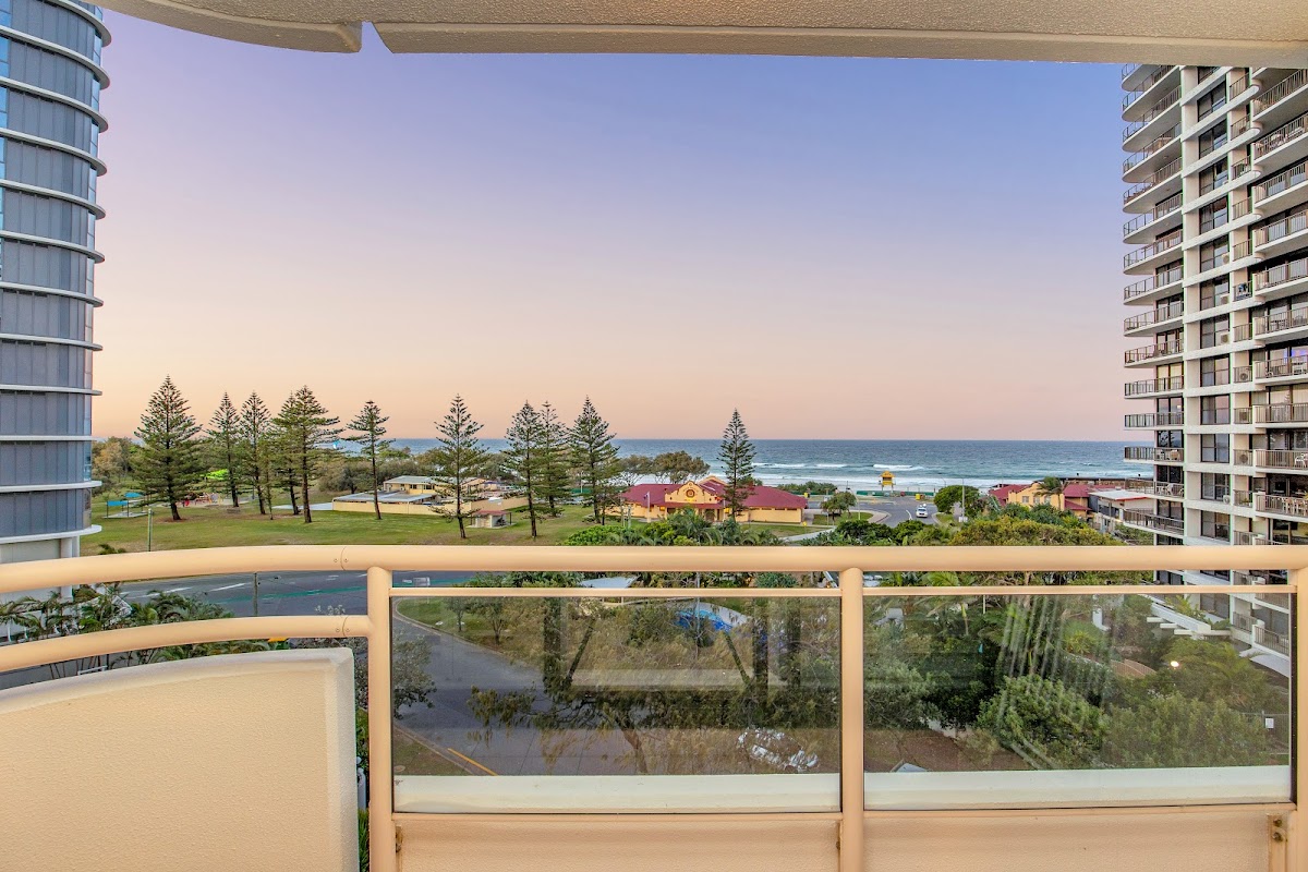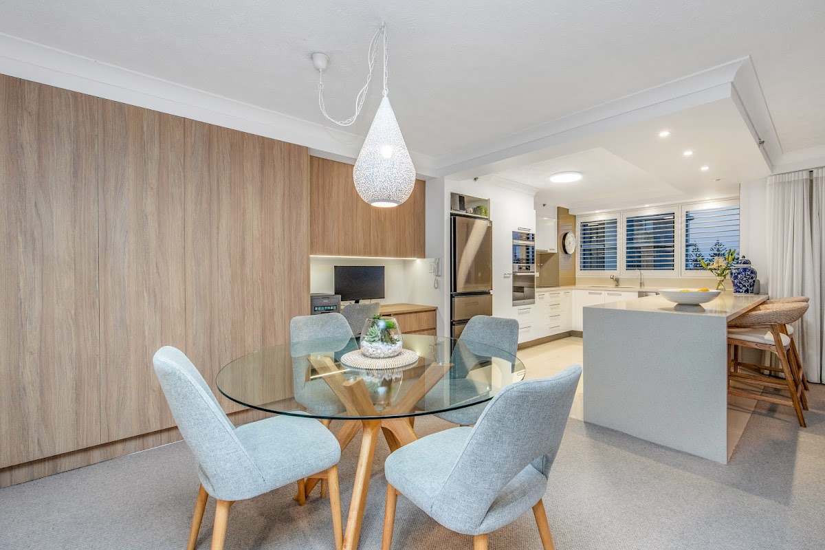 Open-plan living spills onto a sun-drenched balcony with ocean, beach and Broadwater views. Imagine balmy evenings sipping rosé as the sun dips below the horizon, painting the sky in fiery hues.