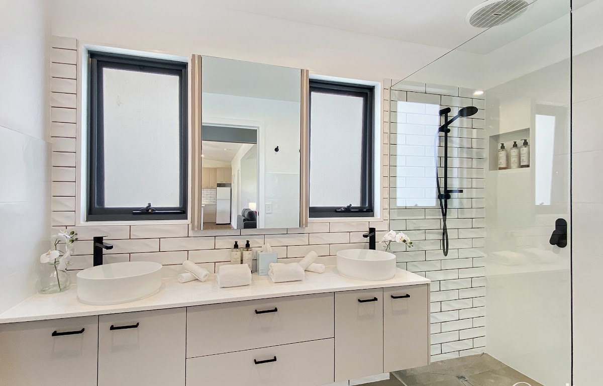The upgraded and renovated kitchen is ideal for those that require a fully functioning kitchen with additional storage and upgraded appliances. The main bedroom features ample space, built-in wardrobes, and ensuite with a shower vanity and toilet finished beautifully. The main bathroom, situated between Bedrooms two and three, features custom joinery with dual ba a ns, an oversized open shower and a toilet. Bedrooms two and three are spacious and feature carpet and built-in wardrobes. A custom laundry with built-in cabinetry, a washing machine, and a dryer is ideal for families of all sizes.