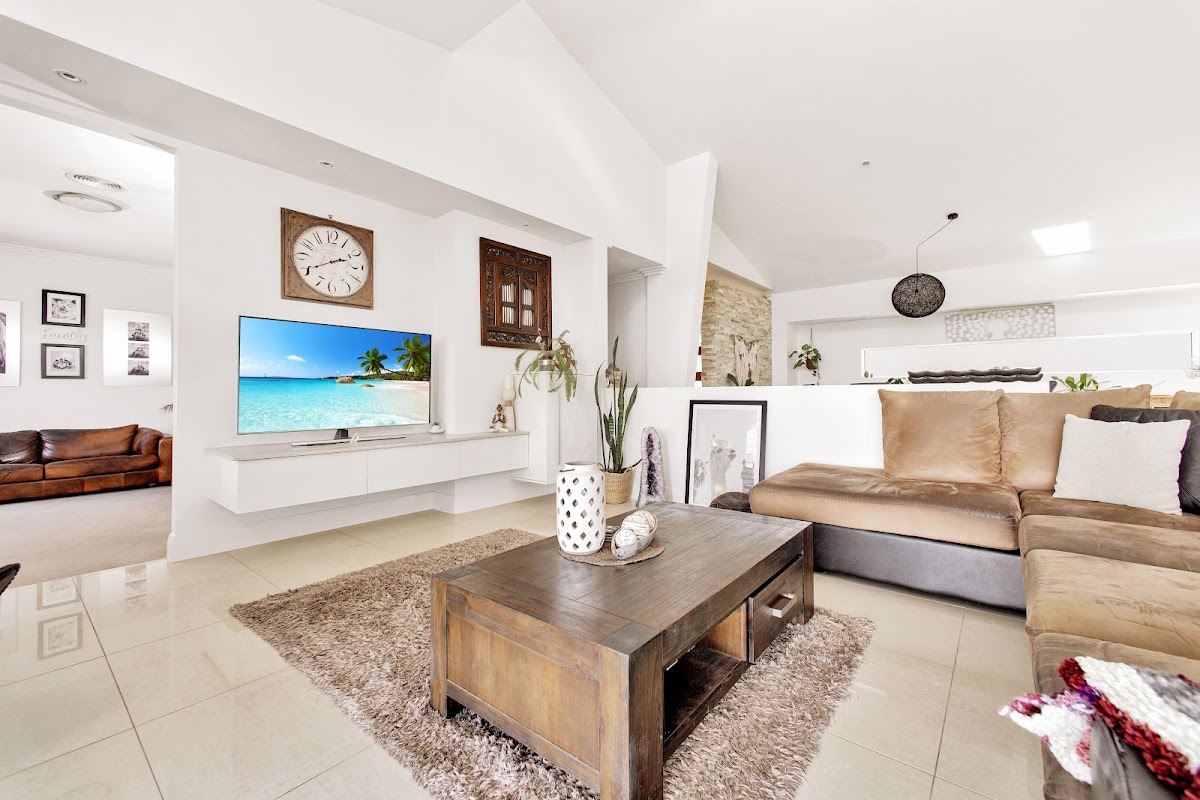 Flawless in design the home boasts open-plan and indoor/outdoor living spaces with natural stone features and polished timber flooring. Working from home is a pure delight with an enormous home office space including separate entrance.