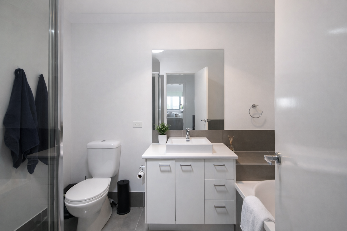 Upstairs, the spacious master bedroom enjoys excellent privacy and includes a mirrored walk-through robe and a private ensuite. Two additional bedrooms are fitted with built-in robes and ceiling fans, while the main bathroom offers both a shower and a separate bathtub—ideal for families.