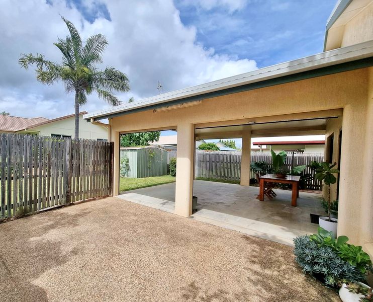 Outside of the home comprises a lovely side sitting area which looks up to Mt Stuart and a large double open garage/carport that has an entrance to the rear of the property.
