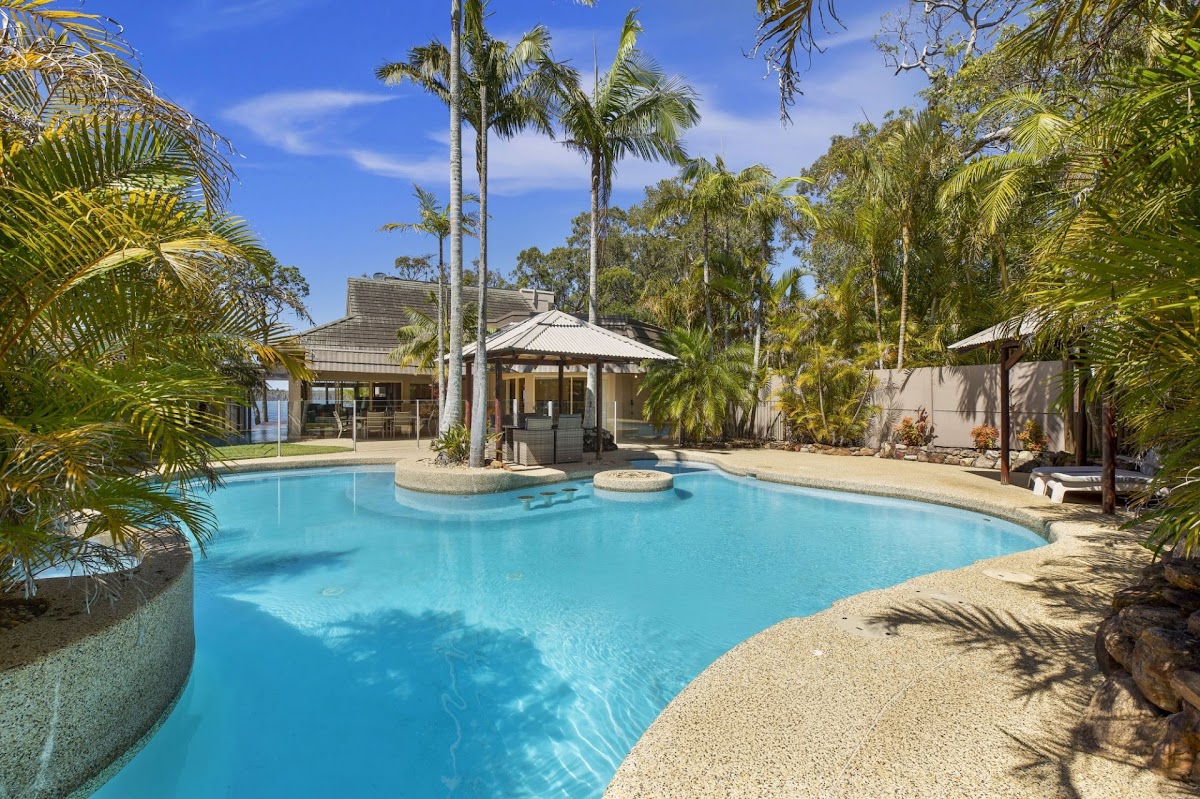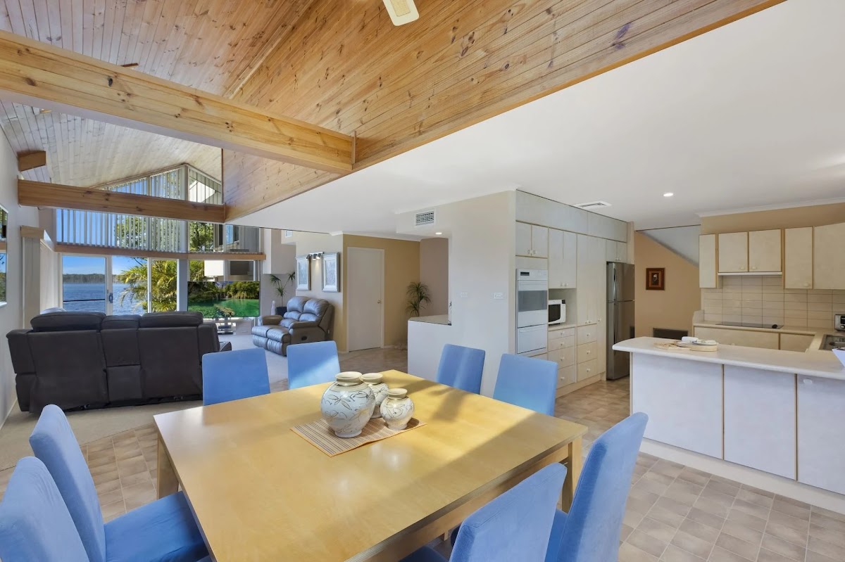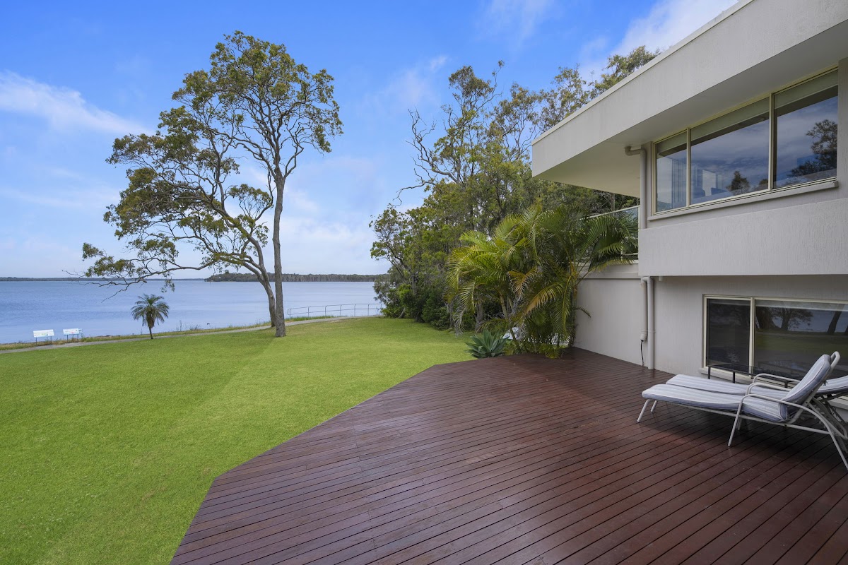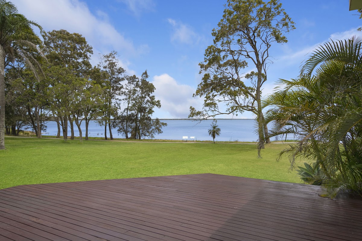 Conveniently set in the heart of Lake Munmorah just 1 hour up the M1 freeway from Sydney, this beautiful, fully air conditioned, 6-bedroom 5-bathroom 2 garage home can be configured as two separate living areas perfectly catering to the family with grandparents, or those just wanting something unique. Welcoming tropical gardens greet you at the gate. This unique family home offers sweeping lake views and cooling breezes from the large back deck. It boasts an abundance of linen cupboards and storage spaces. From the conveniently appointed main kitchen the casual meals area overlooks the large, solar heated, tropical lagoon pool, whilst the timber lined cathedral ceiling living room, opens to a beautiful lake vista. The master suite is appointed with built in wardrobes and a striking courtyard ensuite. This home provides plenty of living space for any size family. At the front of the property is an absolute oasis with the beautifully designed in-ground salt pool. The 696 sqm block (approx.) offers many entertaining areas and is perfect for family gatherings, relaxing with friends or a place to watch the kids play in the yard that gently sweeps down to the lake edge. This stunning waterfront reserve property boasts adjacent room for a caravan, boat, or trailer whilst the lake brings evening breezes and a sense of calm relaxation at sunset. Conveniently located close to schools, Woolworths shopping centre, Medical Centre, transport, churches, cafes, clubs and restaurants, this family home provides massive potential and loads of opportunities for its next owner!