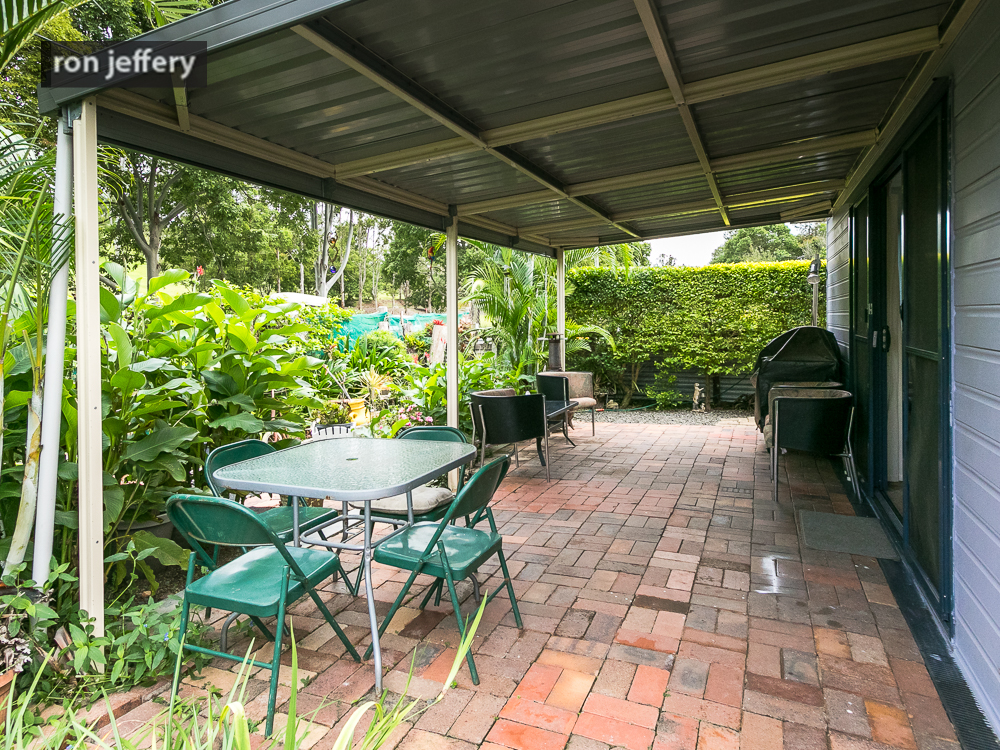 It has a spacious two bedroom home on a level quarter acre lot, well fenced and screened from the road. The screening, hedging and gardens have created a courtyard effect at the front of the home. A great extension to an already spacious living area.