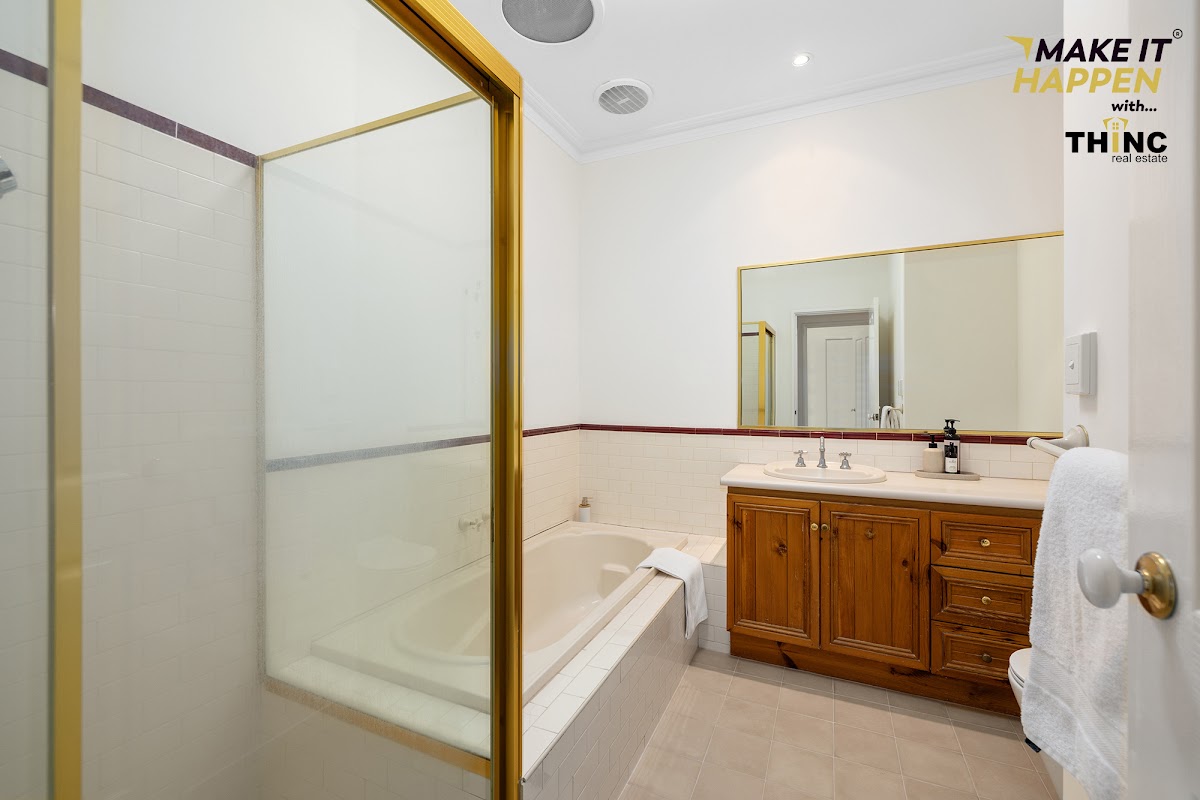 Upstairs, the massive master suite boasts 2 walk-in robes a private ensuite, and space for a study nook—all designed for ultimate comfort. Each bedroom includes built-in robes, while ducted reverse-cycle air conditioning ensures year-round climate control.
