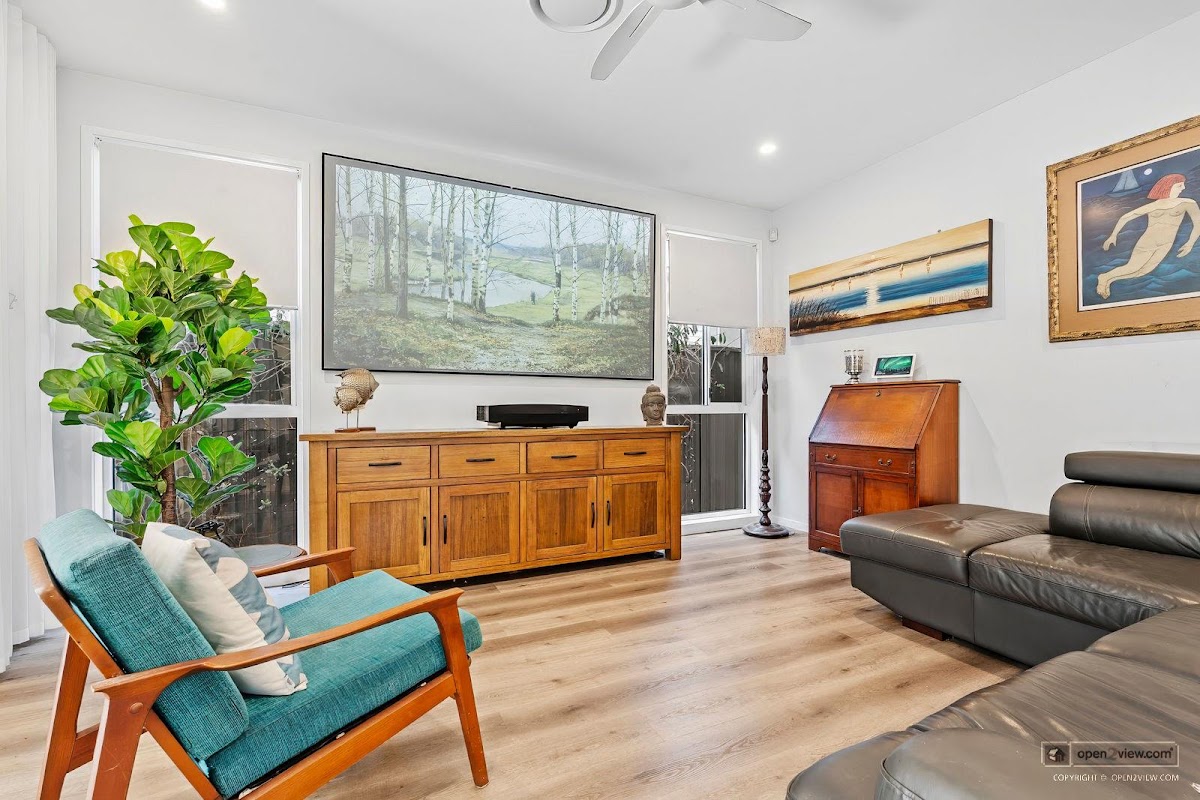 Step outside to the spacious undercover alfresco area with ceiling fan and electric privacy blinds. Perfectly positioned with a north-east aspect, the alfresco captures beautiful morning sun while providing cool afternoon shade — ideal for year-round outdoor living. The low-maintenance yard with artificial turf completes this private outdoor retreat.