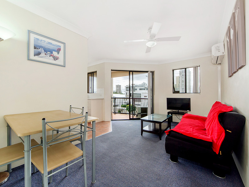 Positioned on the top floor with a balcony to capture the expansive 90 degree views from Southport to Surfers and only 7 mins easy walk to the heart of Surfers Paradise and light rail.