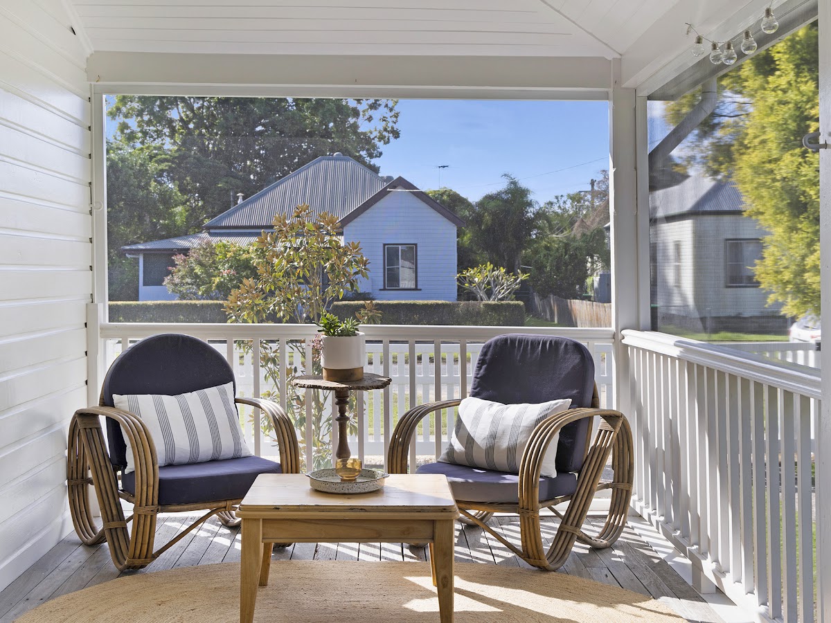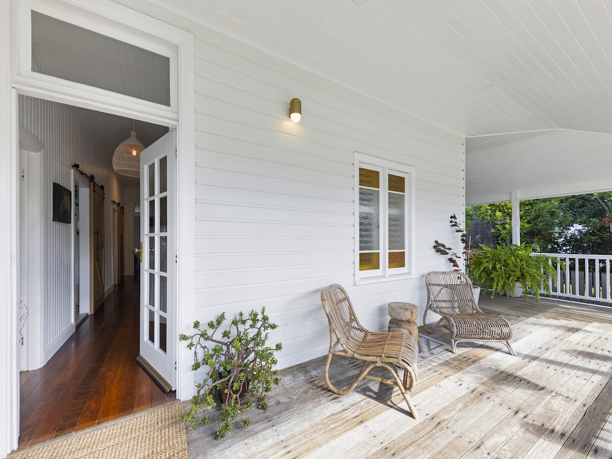 • Three bedrooms in total, two having their very own direct veranda access. One veranda being the sunny front porch, and the second being the fully screened alfresco area to the East, perfect for the second living area, entertaining space, or the studio.