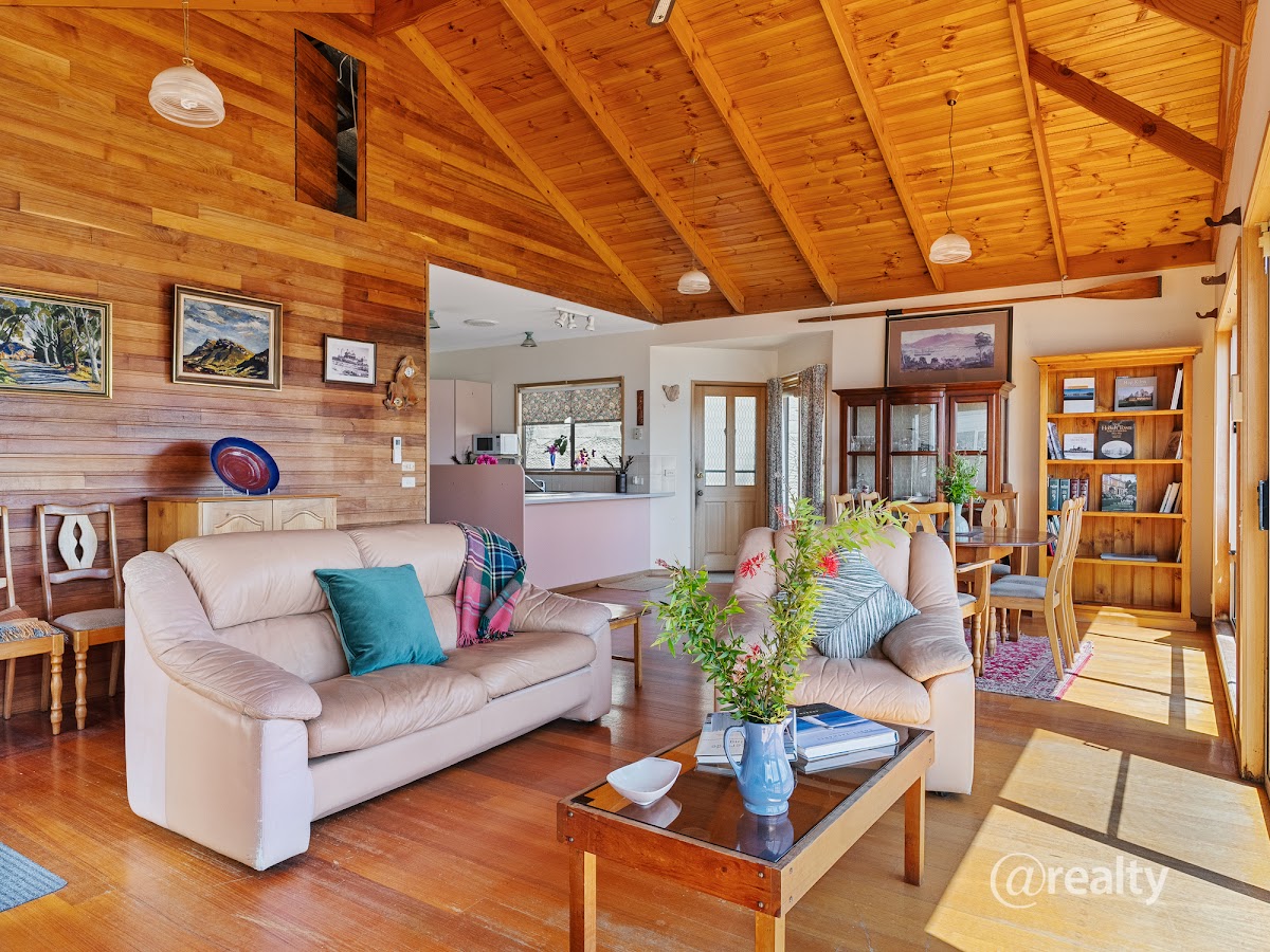 The solid timber home features exposed timber ceilings and floors making for a cosy and warm environment, with large north facing windows bringing the views and sun right into the home.