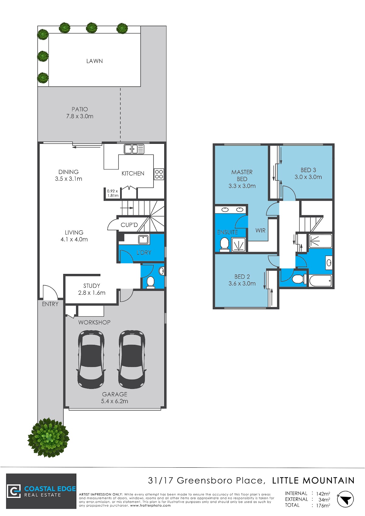 * Walk-in robe in the master; built-in robes in bedrooms 2 and 3