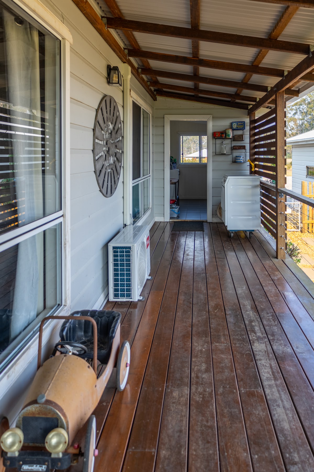 The shed flows into an additional space that was used as a granny flat/accommodation while the owners were building (not council approved as a granny flat), complete with modern bathroom serviced by its own septic, and there’s even a wood stove, and a great verandah with beautiful relaxing views. This space could be perfect for use by visitors, grandparents, or spoilt teenagers.