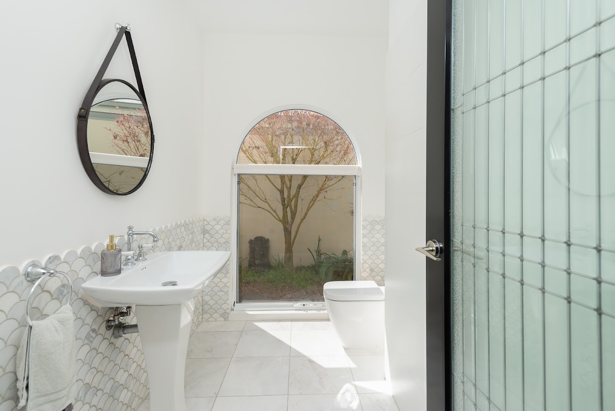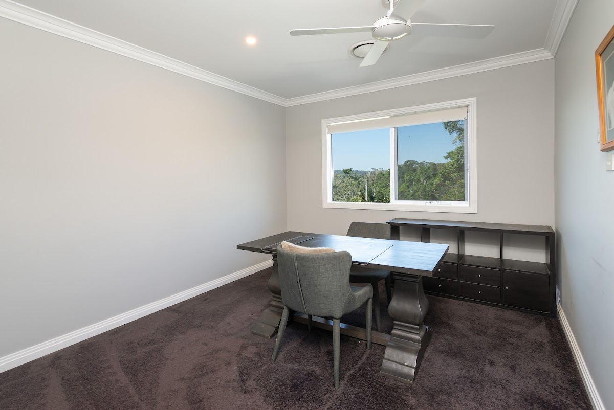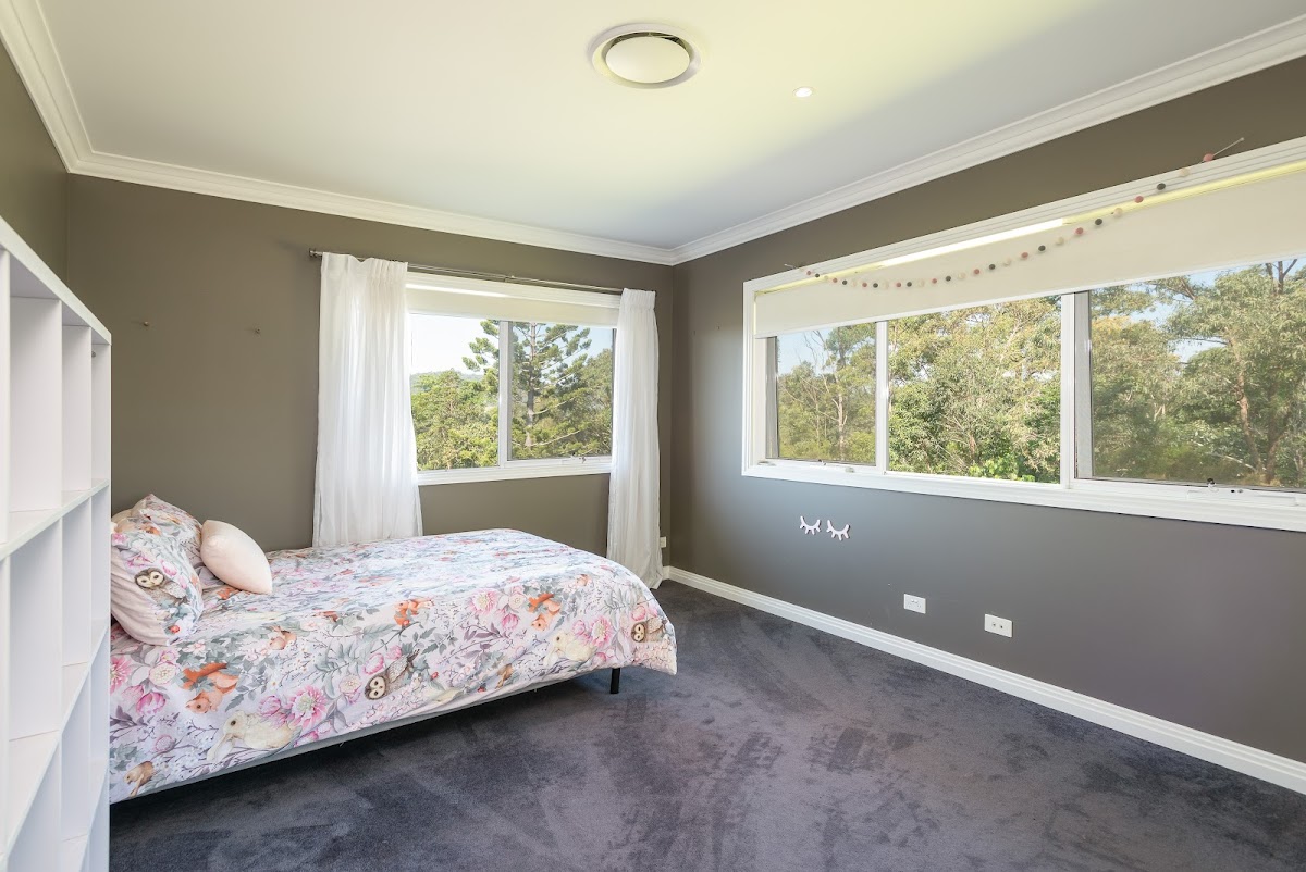 Upstairs, the master retreat is a sanctuary of luxury, boasting a vast walk-in wardrobe, a private balcony, and a breathtaking ensuite. The ensuite features Aegean honed limestone flooring, an Arabescato marble vanity top, an overhead shower head, and a freestanding bath. The three additional bedrooms are generously sized, and the main bathroom is equally impressive. An additional alfresco area provides a scenic view of the treetops.