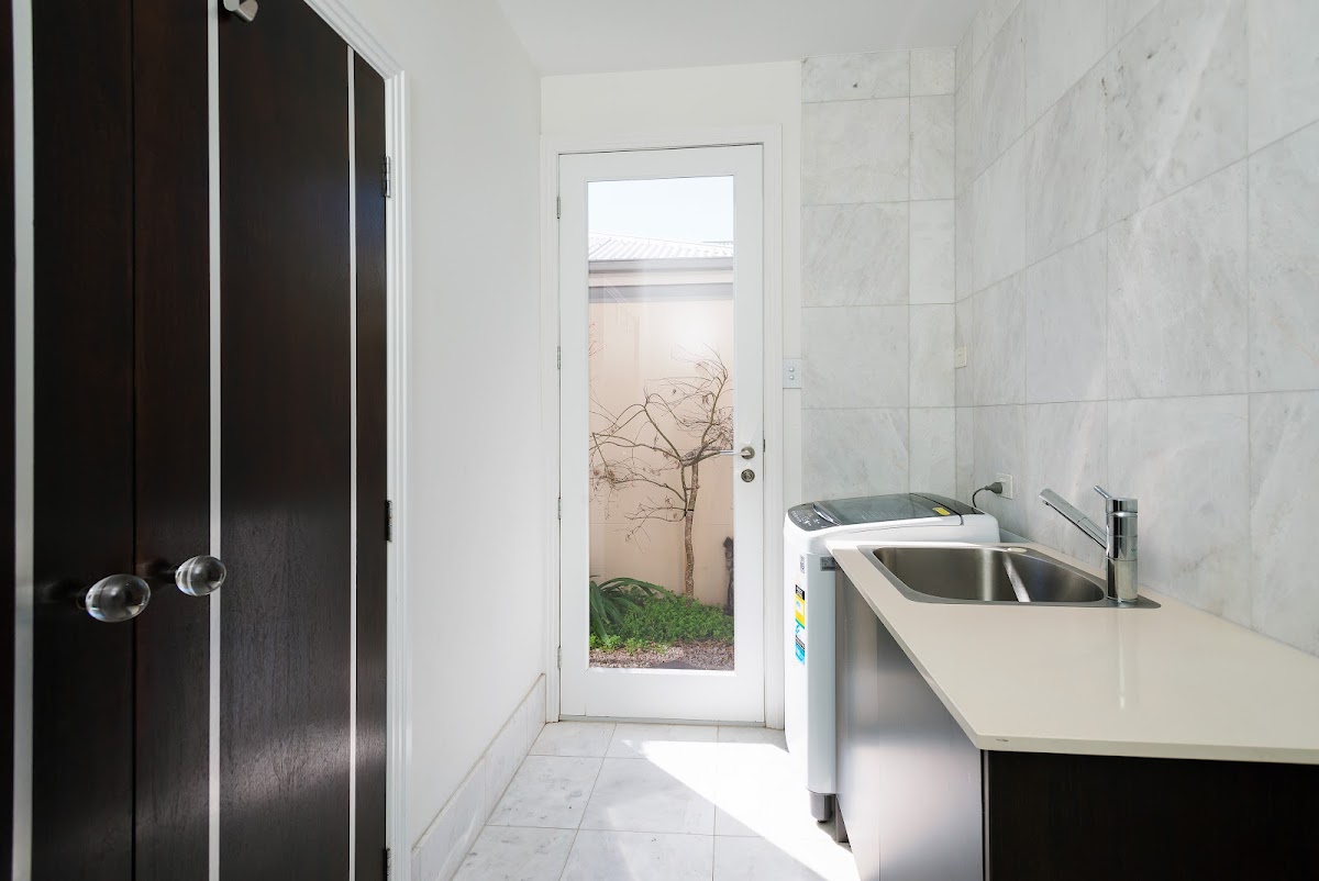 Kitchen with 40mm marble benchtops and 2-Pac soft-close drawers