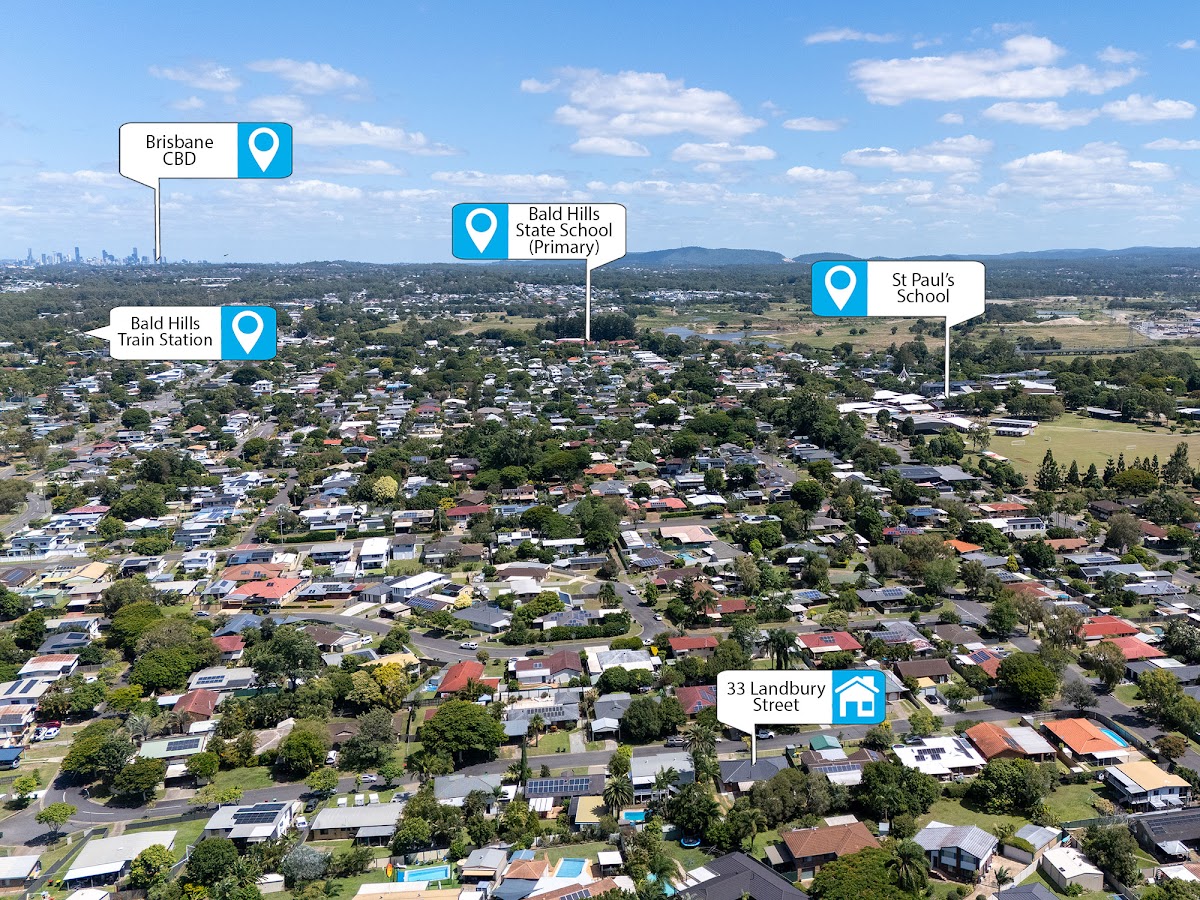 • Schools: 1km to St Paul’s School and 1.4km to Bald Hills State School (Primary)