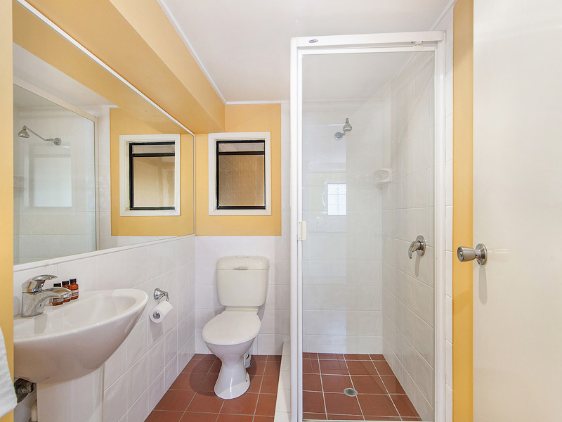 The home has four bedrooms upstairs, three of which have built-in-robes and all have ceiling fans, maximising the natural breeze coming through the large, secure windows. The upstairs rooms are serviced by one of the bathrooms, with the other on ground level.