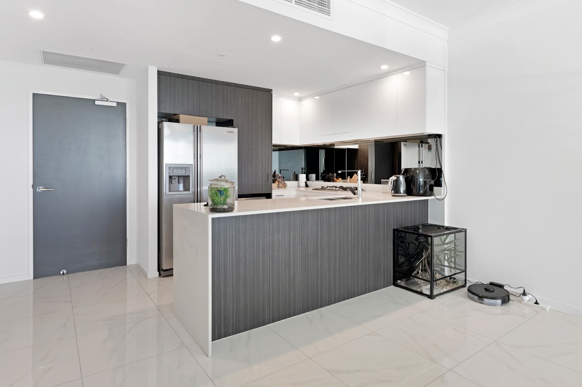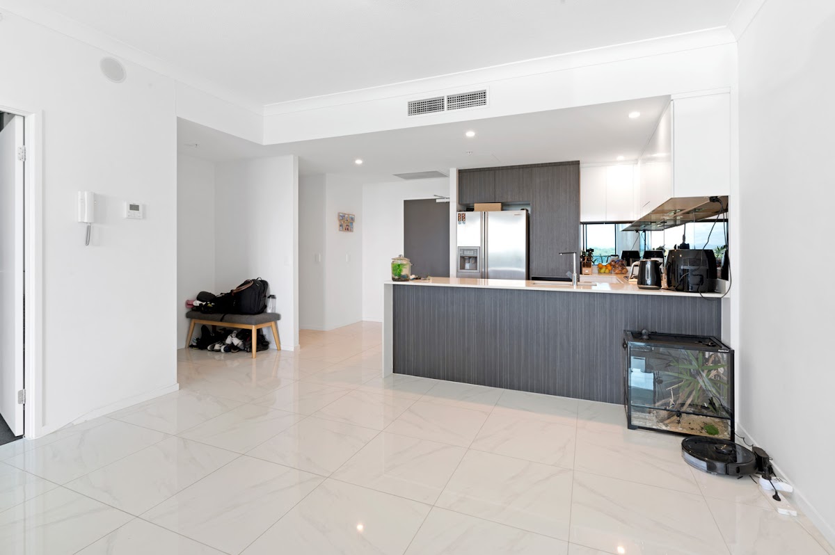 Do not miss out on inspecting this property. Located in building 3 of the iconic WaterPoint towers, this apartment is only 4 years old and has so much to offer. Boasting 2 good size bedrooms, master with double sided his & her robes, balcony access & stunning views. Open plan kitchen and lounge room with floor to ceiling windows & double doors opening up to the view from the 7th floor of the city & hinterland.