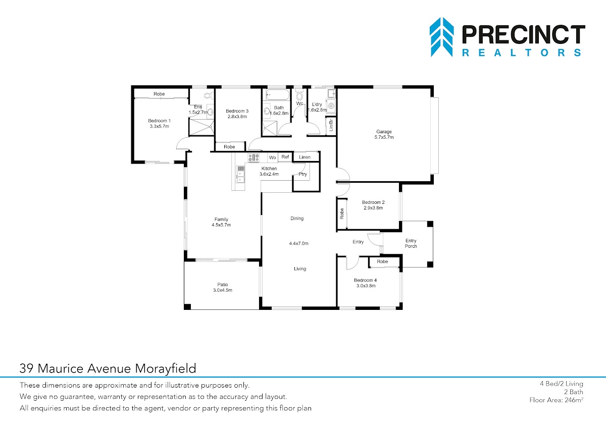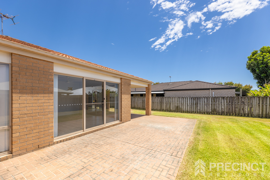 The thoughtfully designed floor plan features a spacious kitchen that flows into the dining area, main lounge, cosy family room, and private patio perfect for entertaining. Each of the four bedrooms comes with built-in wardrobes and ceiling fans, while the living room is equipped with air conditioning for year-round comfort. The home also includes a generous walk-in pantry, making storage a breeze.