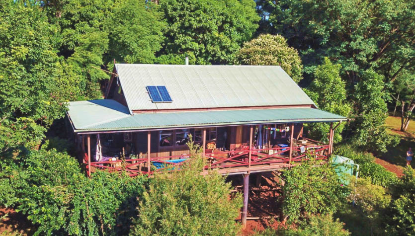 Northern Rivers region. The home is powered by a 2kw solar system with 750-amp hour battery storage. Water is supplied from a 6000gal rainwater tank and additional 1000 gal catchment tank.