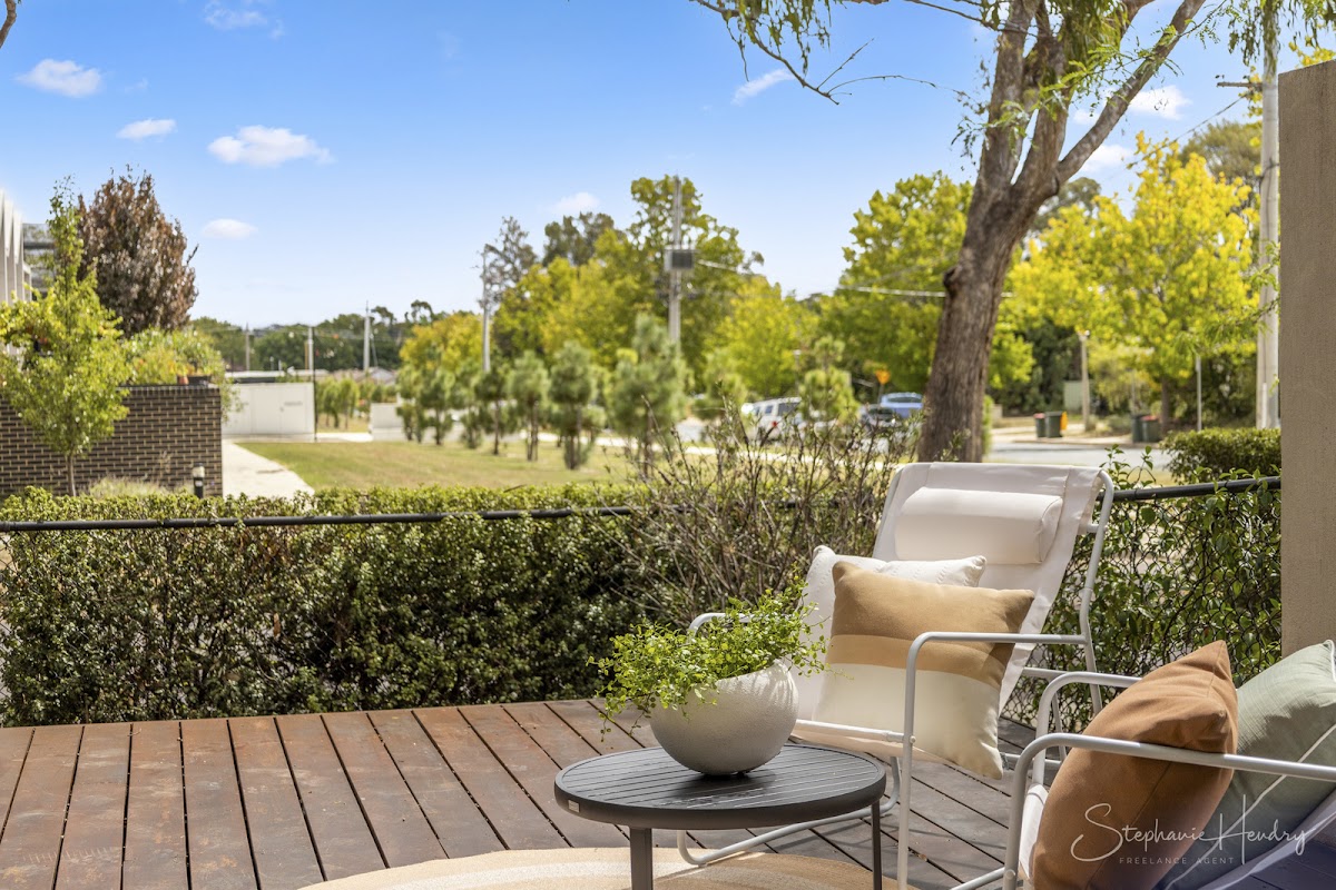 Your new contemporary apartment, situated on the ground floor of the complex has its own private entrance. Surrounded by a picturesque tree-lined streetscape, you will enjoy the tranquil ambience of gardens and lush treetops, all within close proximity to Downer cafes, Dickson shops, playgrounds, light rail, walking trails, and bike paths.