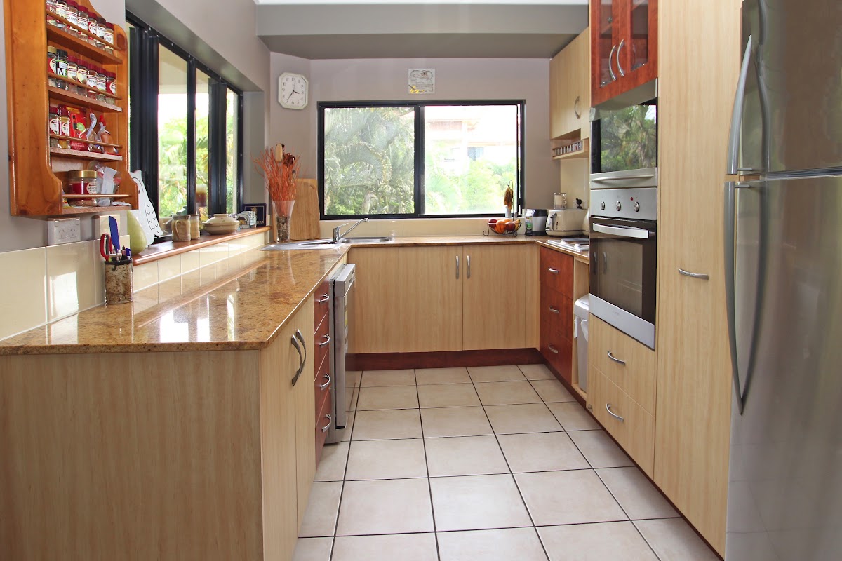 * Modern well equipped kitchen (stone bench-tops)