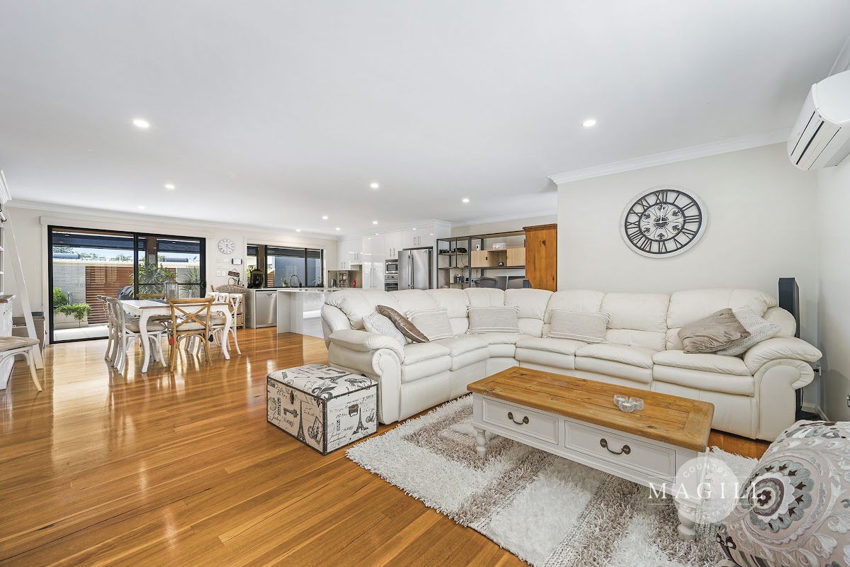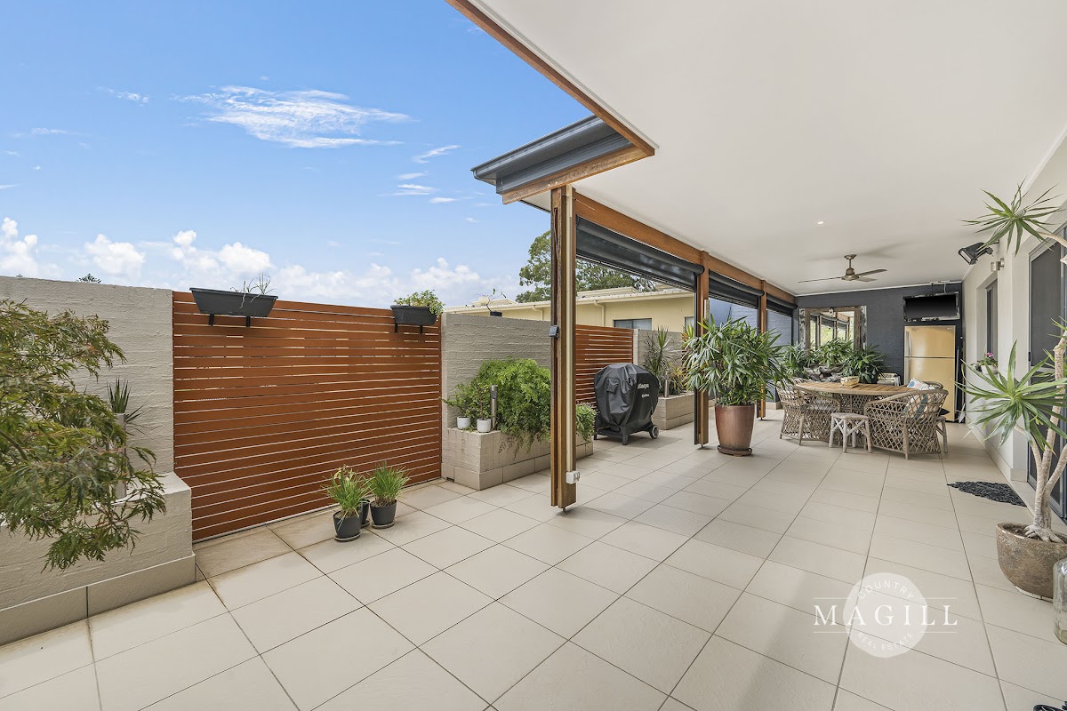 This quality apartment features three spacious Queen-sized bedrooms, each with built-in wardrobes, ceiling fans, and an ensuite to the main bedroom as well as sliding door access to the back patio. Year-round comfort is assured with reverse cycle air conditioning, while polished timber floors throughout add a touch of sophistication. The high-gloss kitchen boasts stone benches and Smeg appliances. Plantation shutters add an extra layer of elegance and privacy.