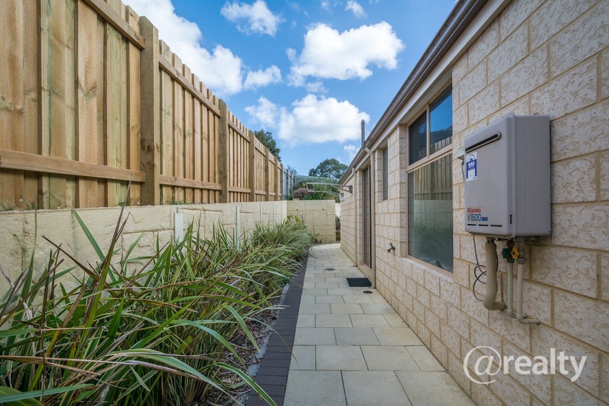 To the left of the kitchen is bedroom 2 with a BIR and a serene outlook to the side garden bed and high wooden boundary fence.