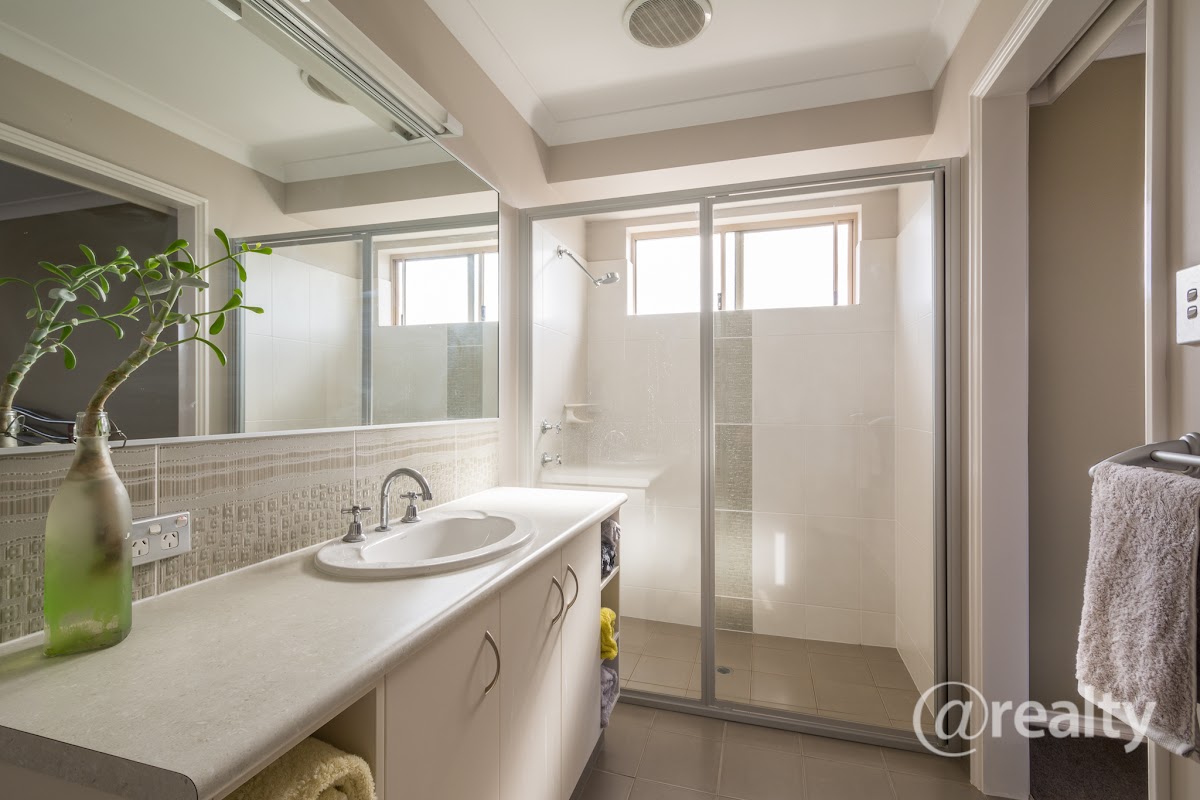 On the left of entry is a formal carpeted lounge/parents retreat looking out towards the hills. To the right is the private master en suite with a built in robe and beautiful bathroom consisting of a double size shower, basin and water closet. It’s easy to convert for disabled or elderly people if needed.