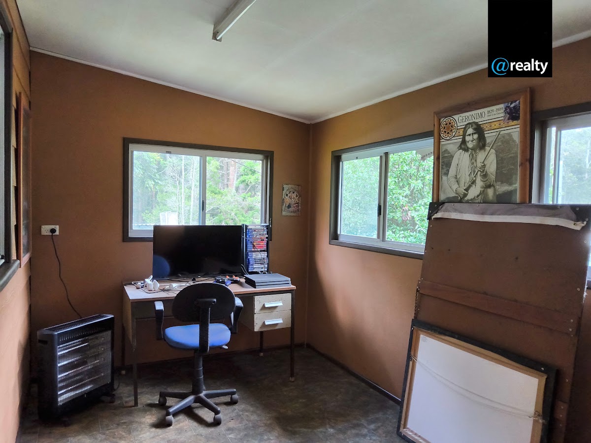 Adjacent to the house, discover a large two-bay shed with a high roofline, complemented by an open-plan studio granny flat and external amenities block—ideal for extended family or guests. The property is securely fenced around both the house and granny flat, set amidst peaceful bushland and native sclerophyll forest. Benefit from potable bore water with excellent taste, theirs a rainwater tank that is plumbed to the bore, plus practical additions like a workshop and carport conveniently close to the home.