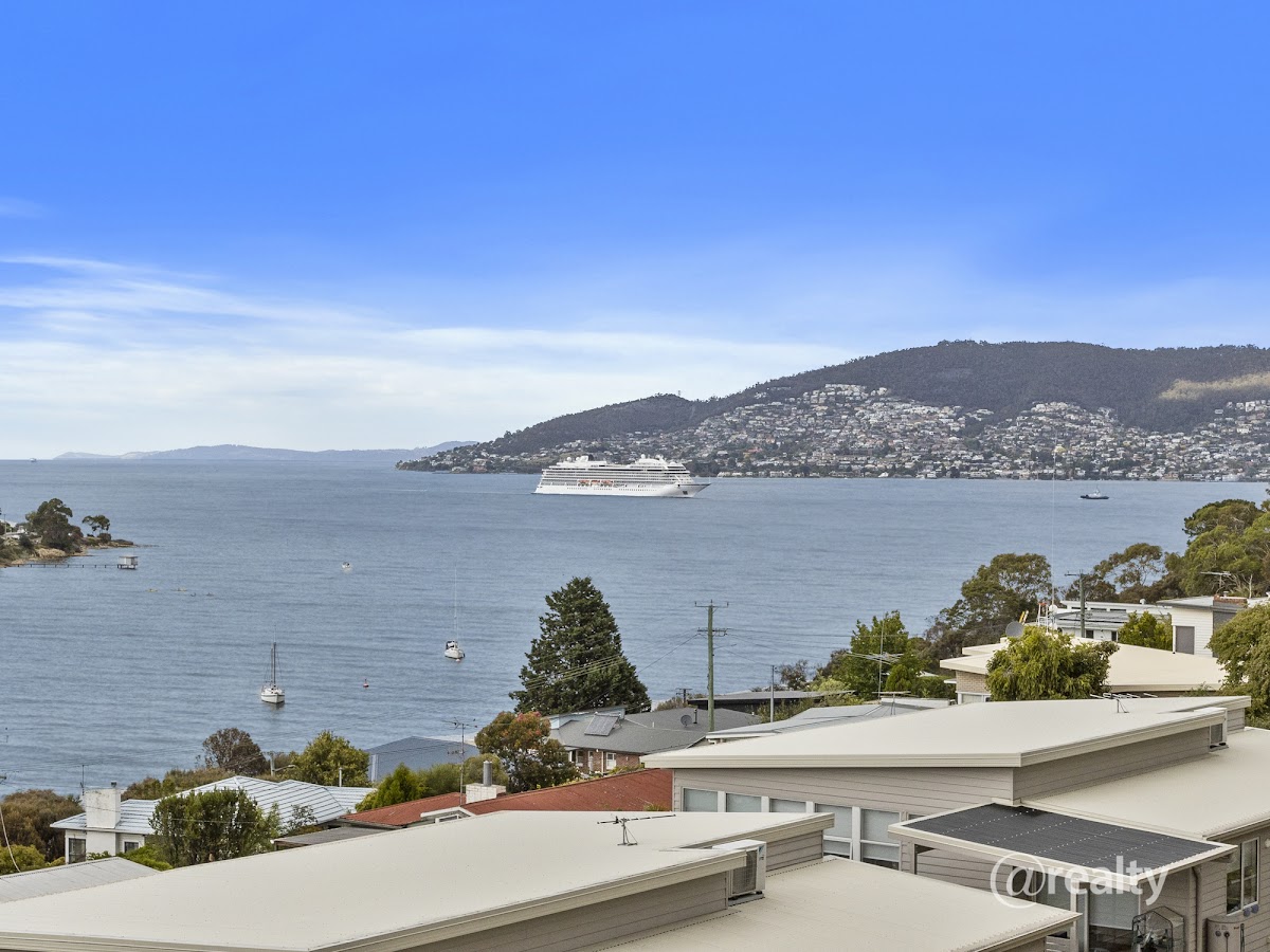 offers expansive views across Kangaroo Bay foreshore, Bellerive Yacht club, Oval, Quay and Bluff, right across the River Derwent from Howrah and Tranmere to Sandy Bay and beyond, with South Arm and Bruny Island in the distance, an impressive outlook – unlikely to be ever built out!