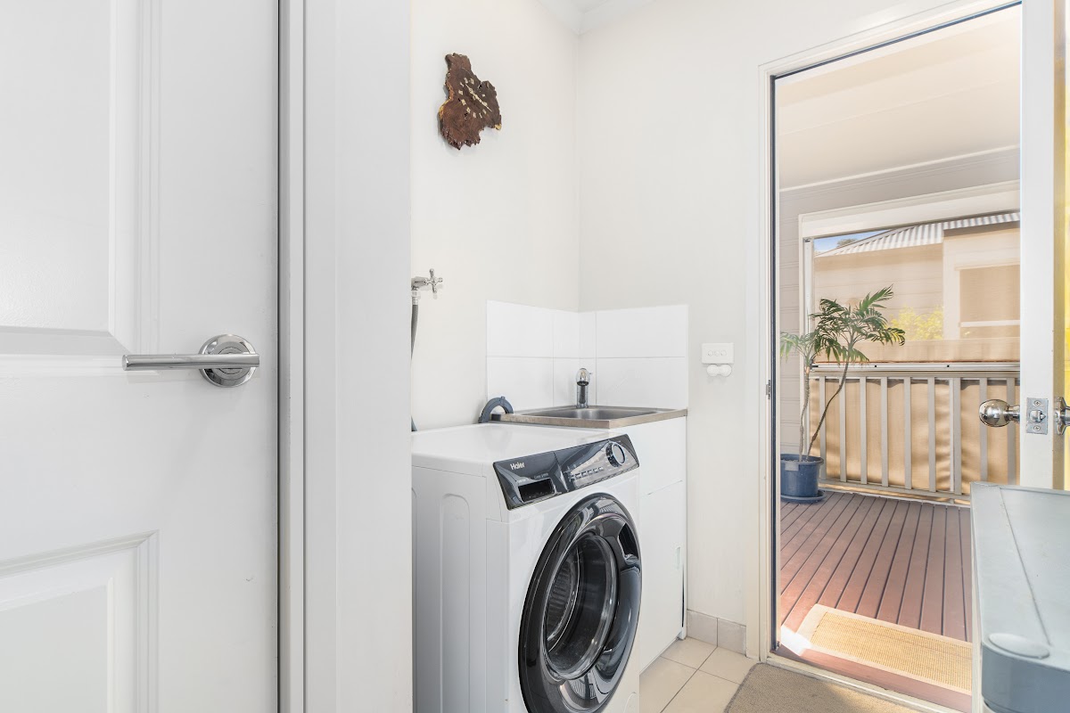 There are two spacious bedrooms, with sliding built-in wardrobes, providing ample storage space. Both bedrooms are serviced by a generous size main bathroom, while the spacious study offers an ideal, quiet and private space for you to pursue your hobbies or work from home. The nearby laundry, with generous storage cupboard provides access to the outdoors with an additional toilet neatly concealed within.