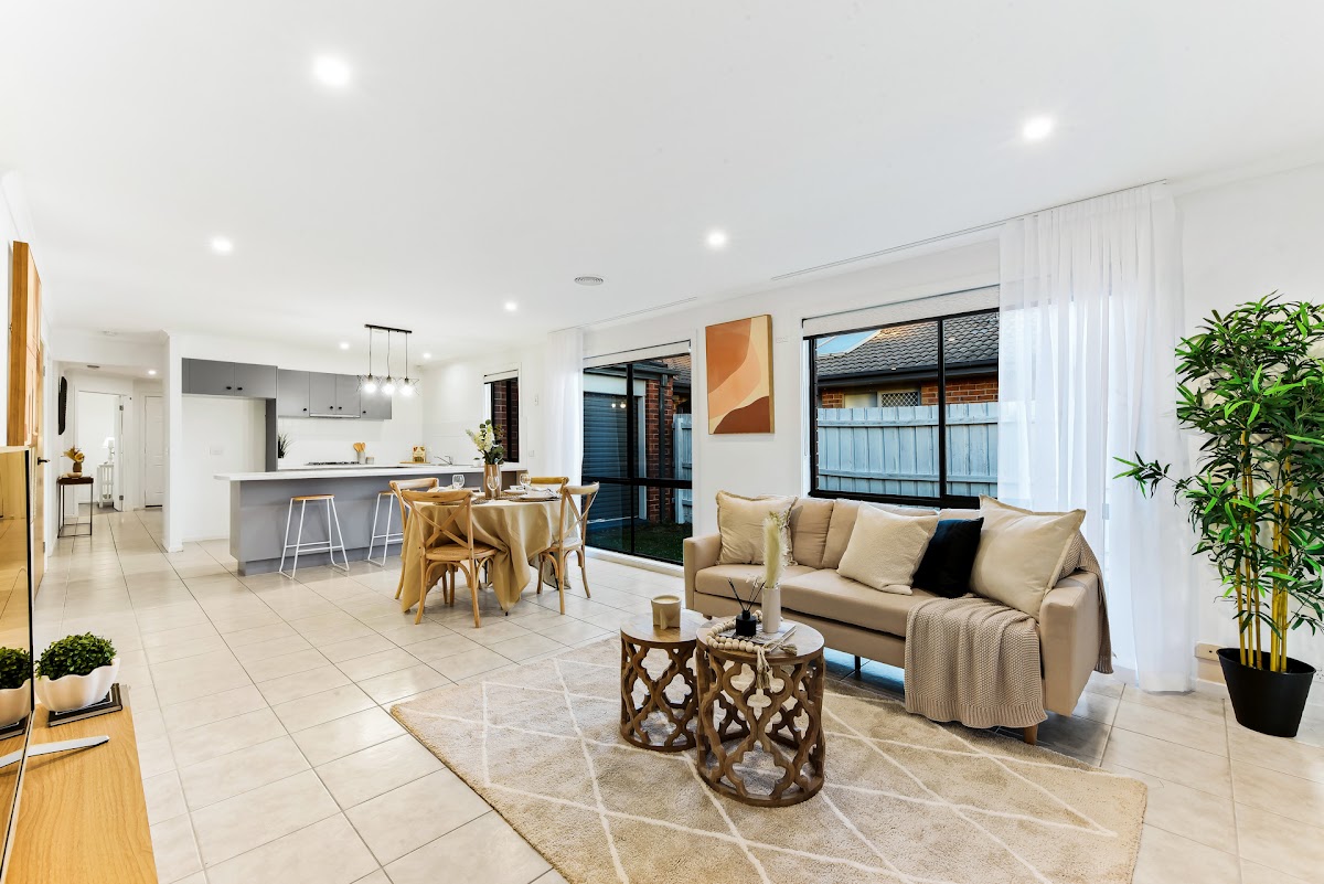 The home also boasts two additional bedrooms, a stylish family bathroom, and a good-sized laundry area. The double doors from the living area open onto a tranquil alfresco space and neat low maintenance backyard – perfect for entertaining or relaxing in privacy. Plus, enjoy the convenience of a single garage with drive-through access to the rear.