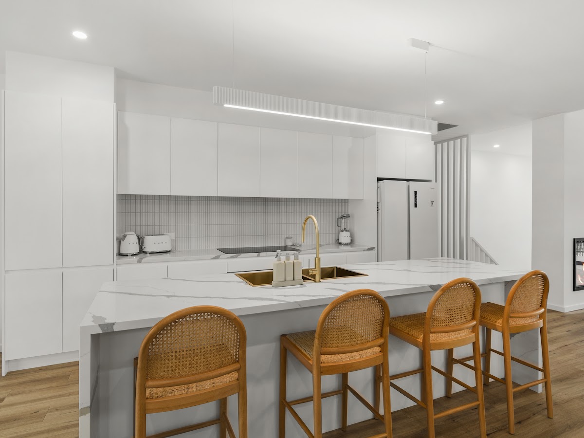 The entry level is designed with functionality in mind, with its own bedroom with built in robe, private bathroom and extra living room, perfect for guest accommodation or teenagers retreat. Internal access is also provided to the expansive garage with enough space for 5 cars and workshop space. You are also spoilt by extra-high ceilings and epoxy flooring throughout.