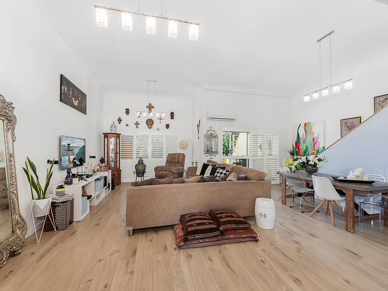 * Open Plan lounge and dining with 12 foot high ceilings for all day sunshine