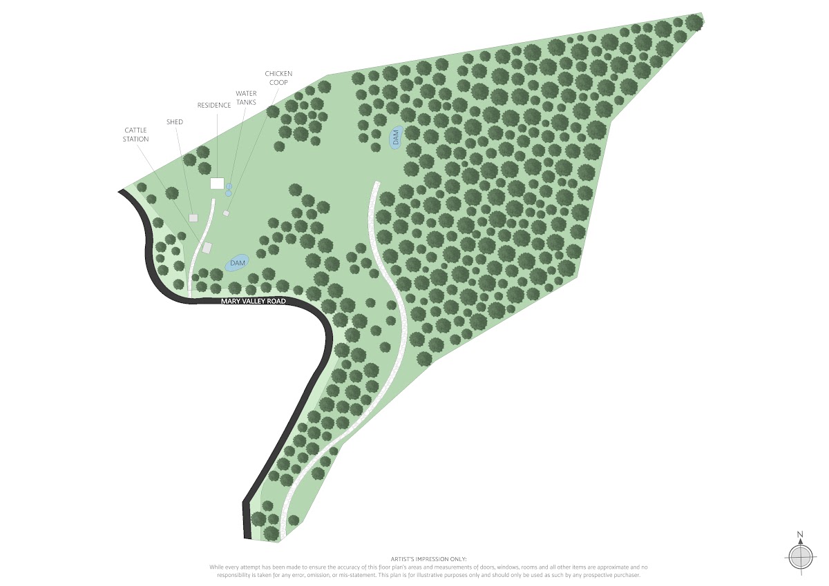 Private 30 Acres, fenced including cattle yards and crush, holding upto 20 head of cattle, 2 dams always full that gravity feed down to the house outside taps plus 2 x 6500 gallon water tanks with an empty 10k gallon tank in the paddock if required, whilst the dams were just both cleaned up, there is plenty of room to build another shed or perhaps build a 2nd dwelling 20mtrs from the main home (SCA). Also note one dam is 15mt deep plus the 120mt deep Bore that pumps into the Water Tanks future proofs yourself for affordable living and low rates coming under the Gympie Council.
