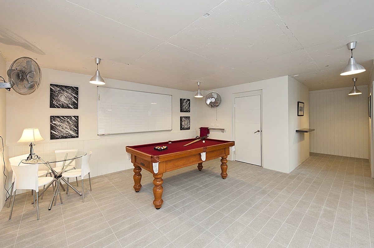 The front section of the home is like the guests wing incorporating two classy bedrooms with their own resort style bathrooms. These are no ordinary bathrooms with floor to ceiling travertine tiling but one is set up with the wonderful use of glass, plantation blinds, elegant freestanding bath and stylish vanities.